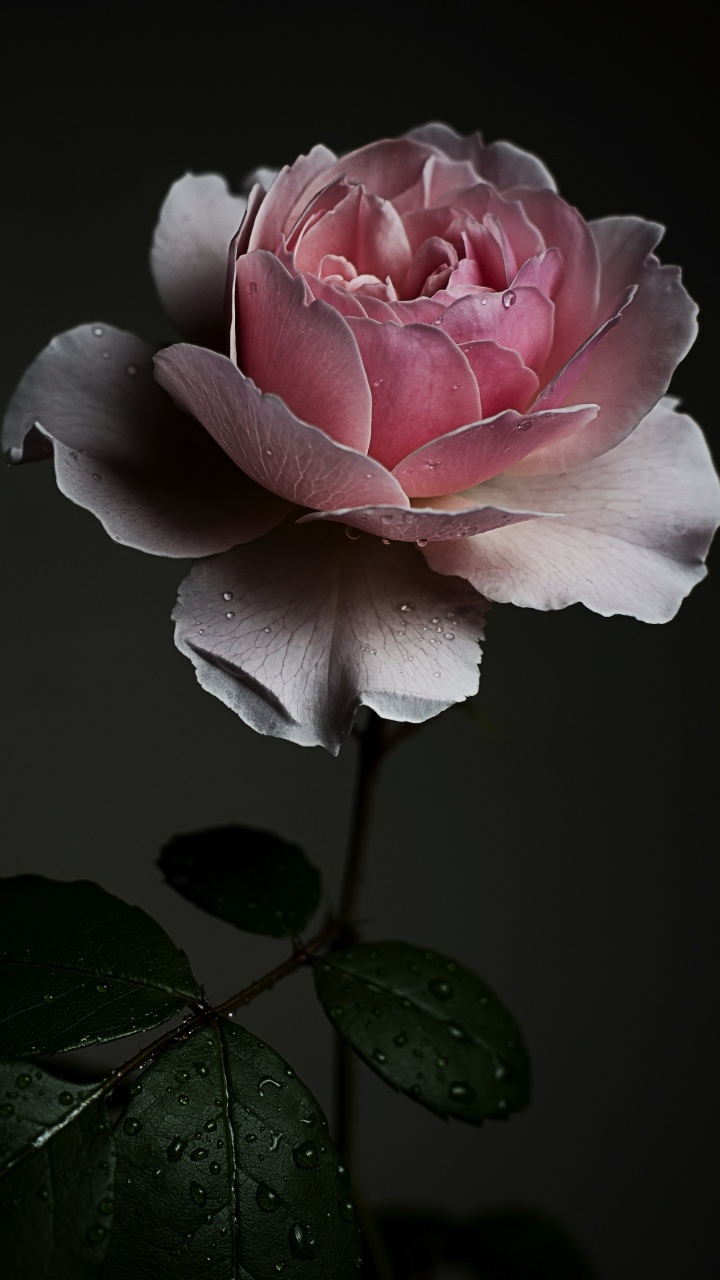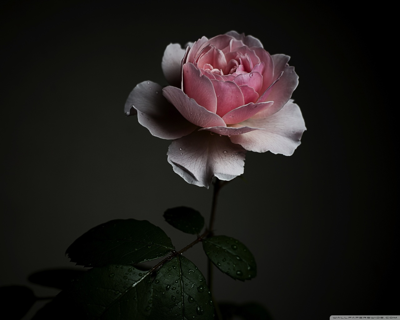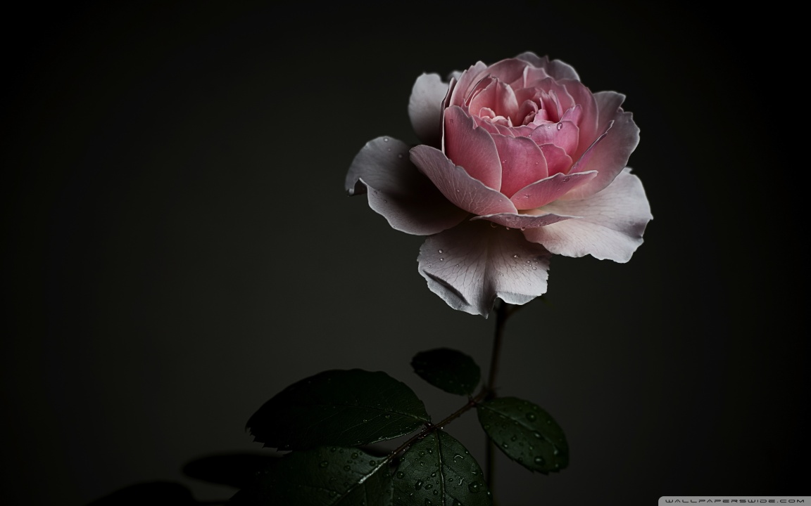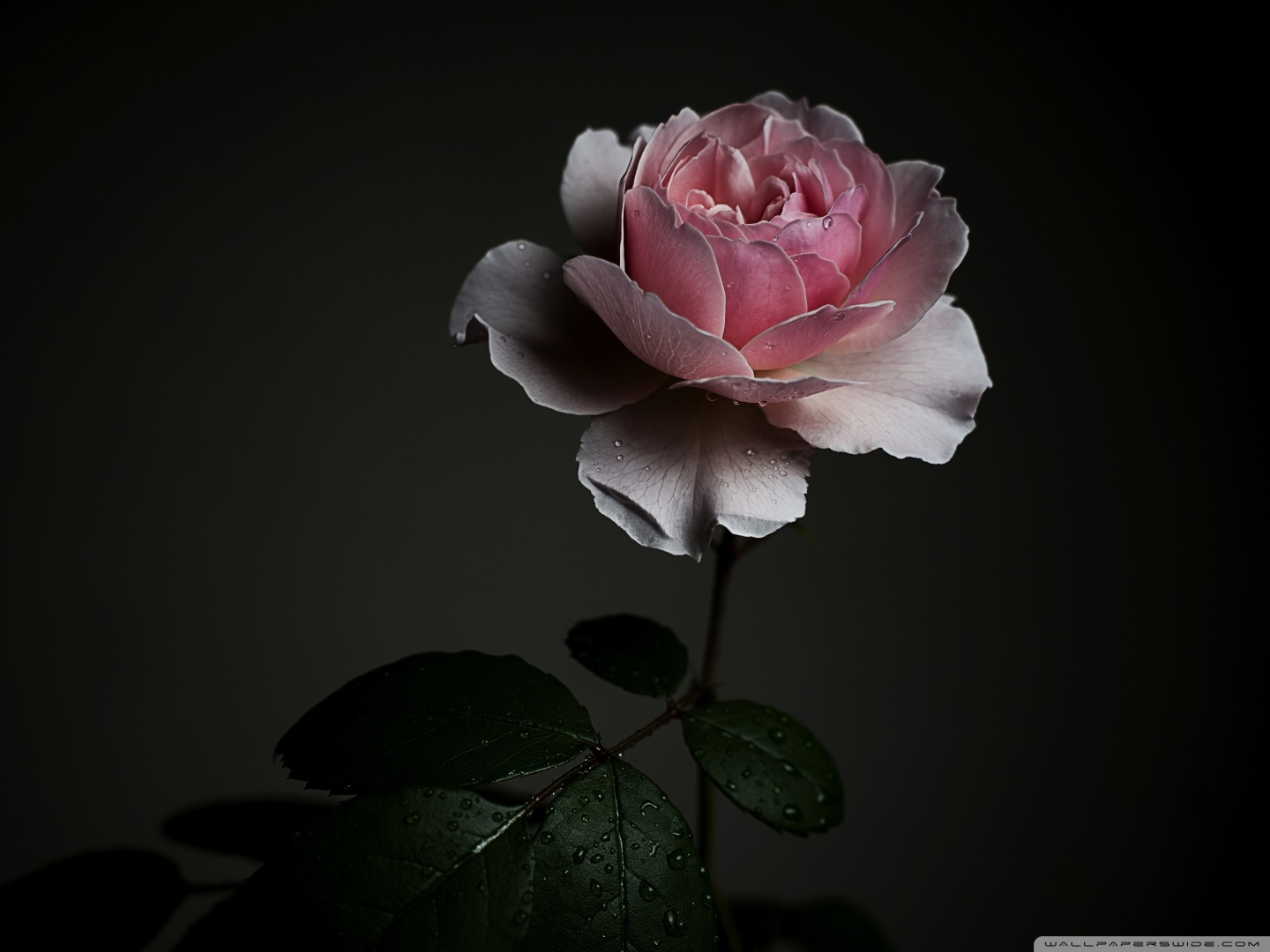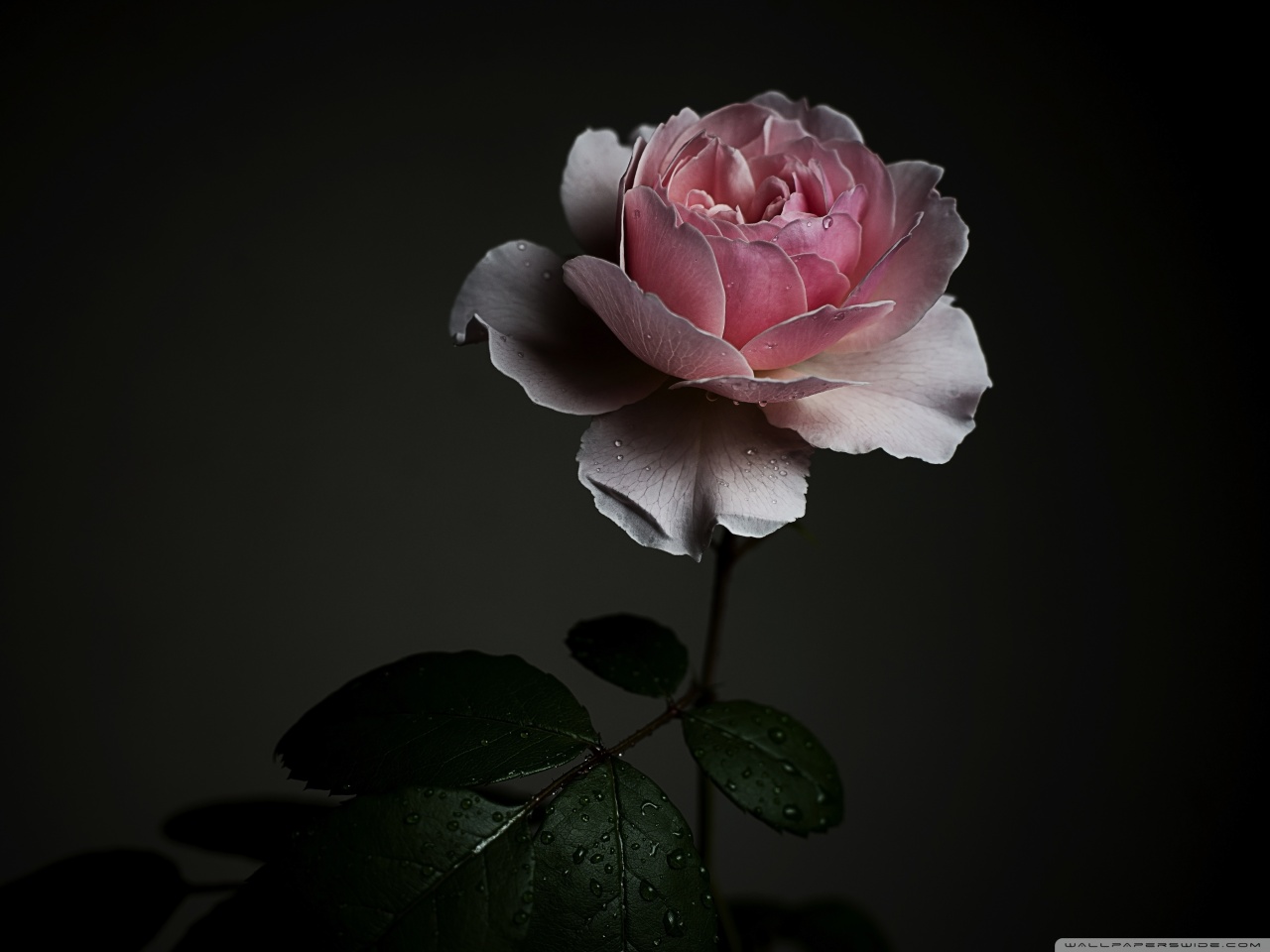 Download Wisley 2008 Rose with Water Drops, Dark... 4K UHD Wallpaper