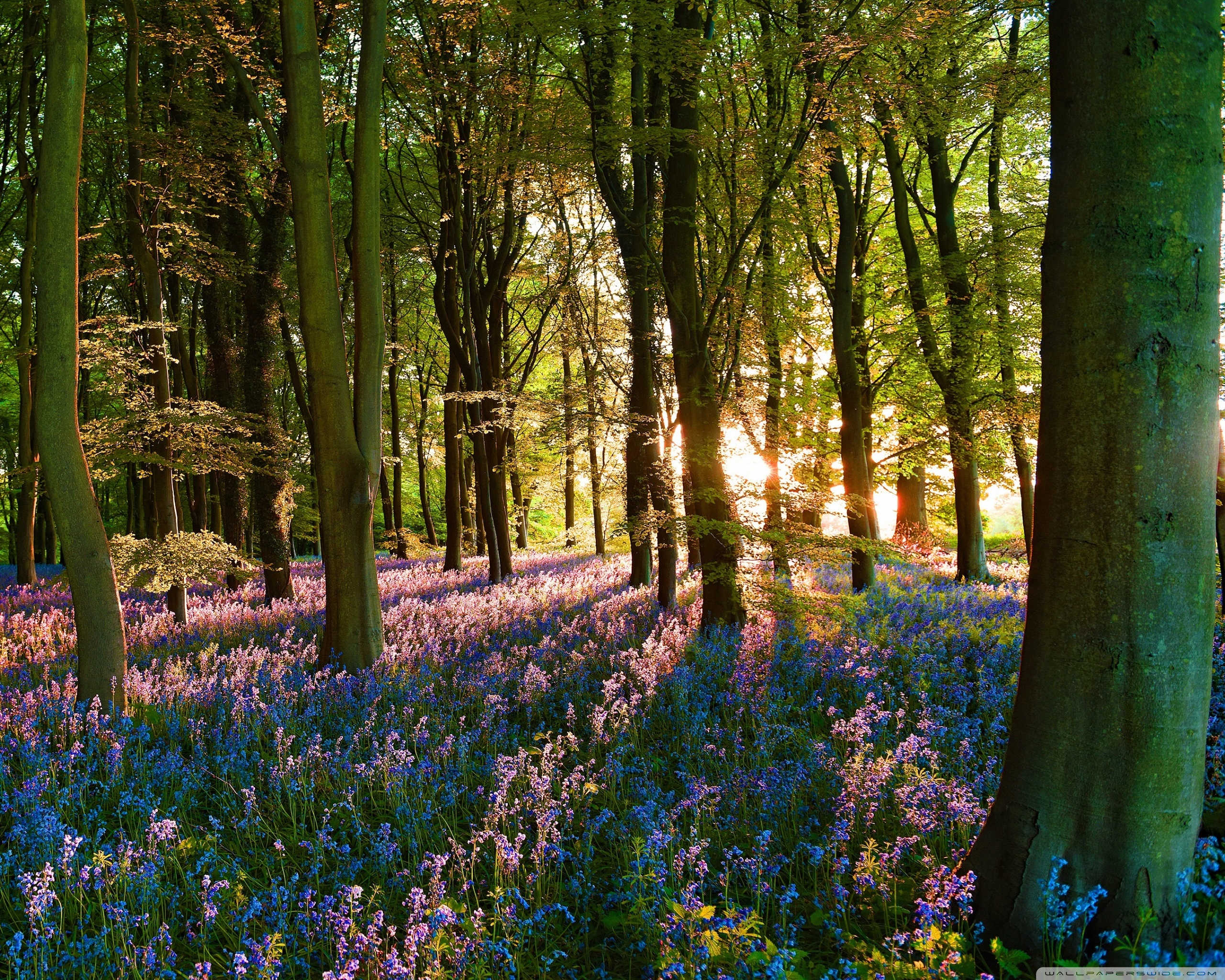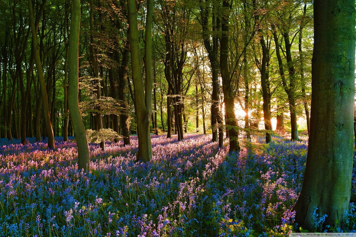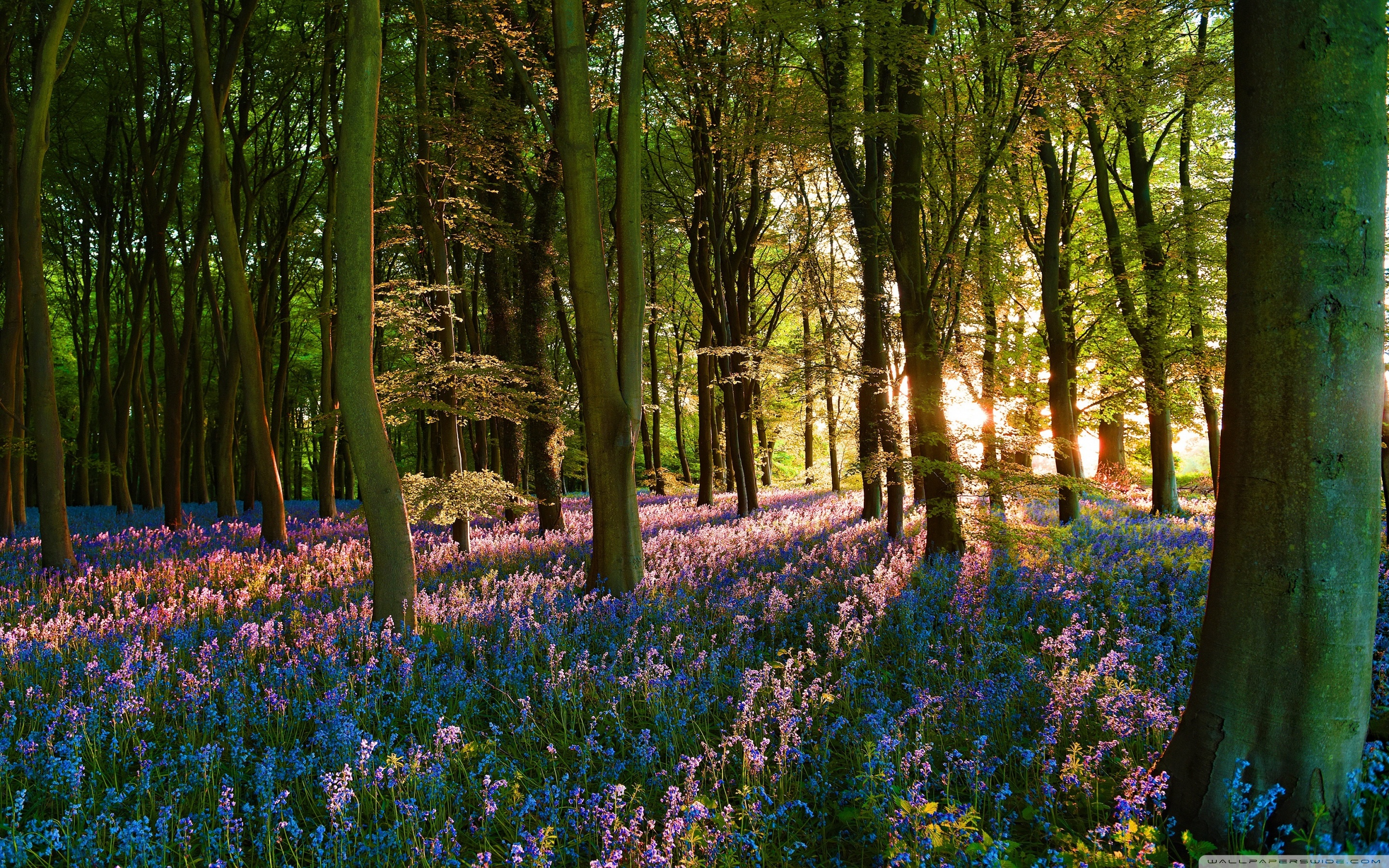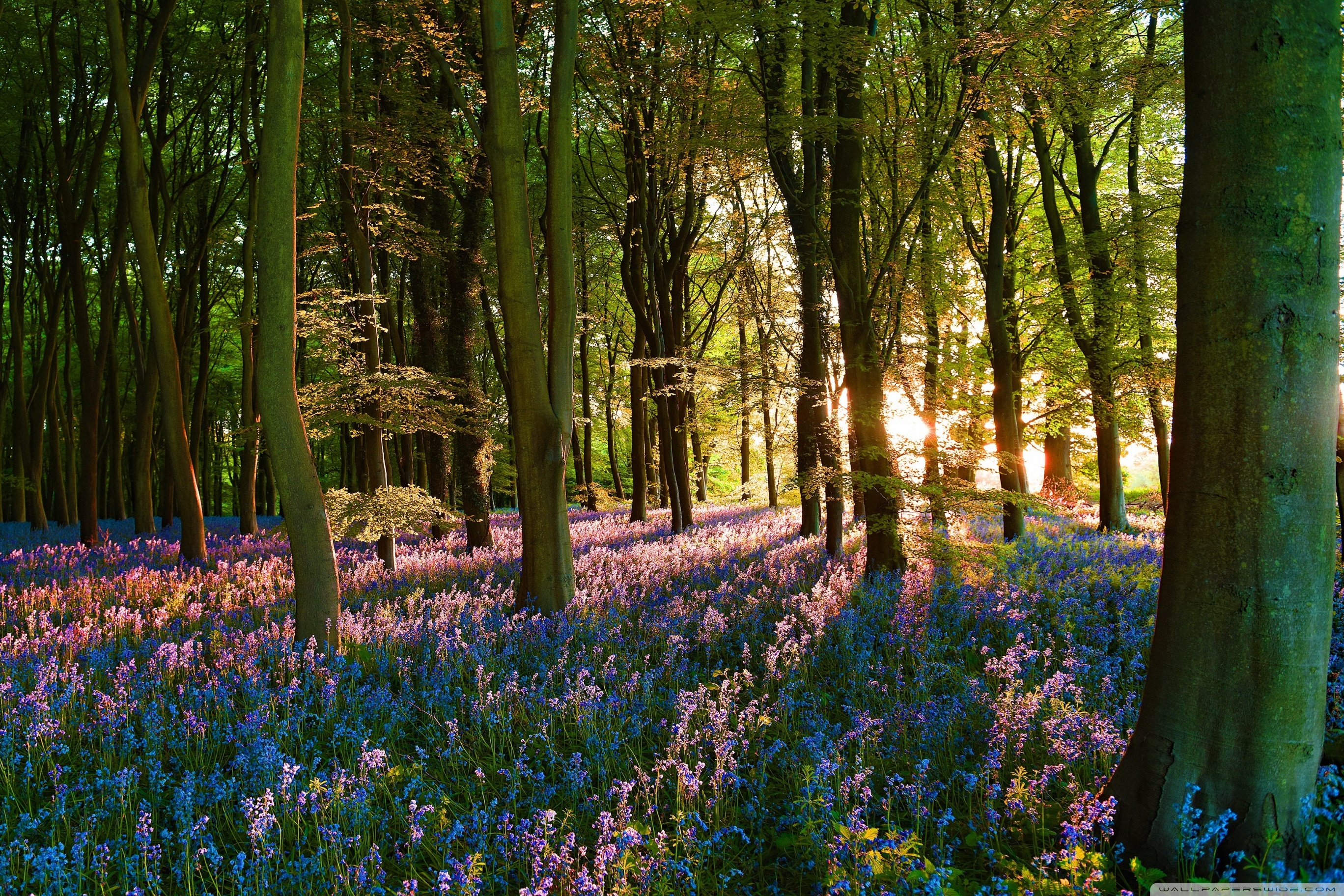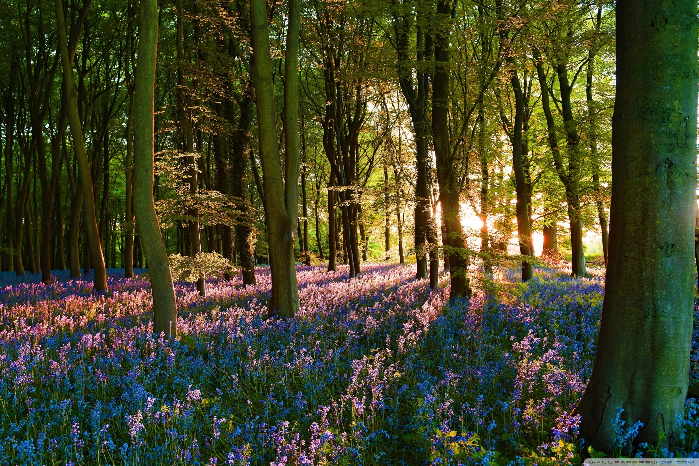 Download Woodland Scene with Violet Blossoms 4K UHD Wallpaper