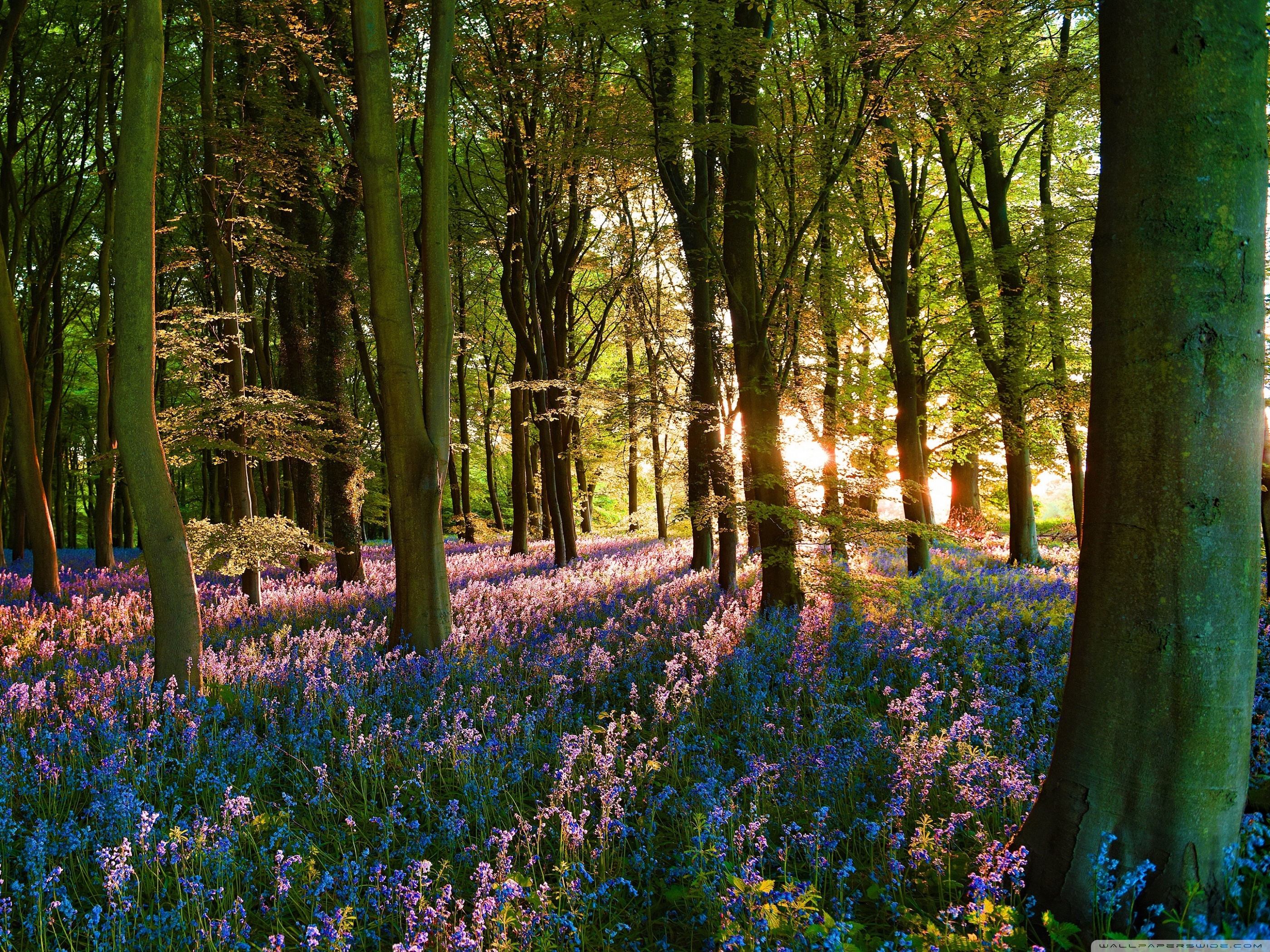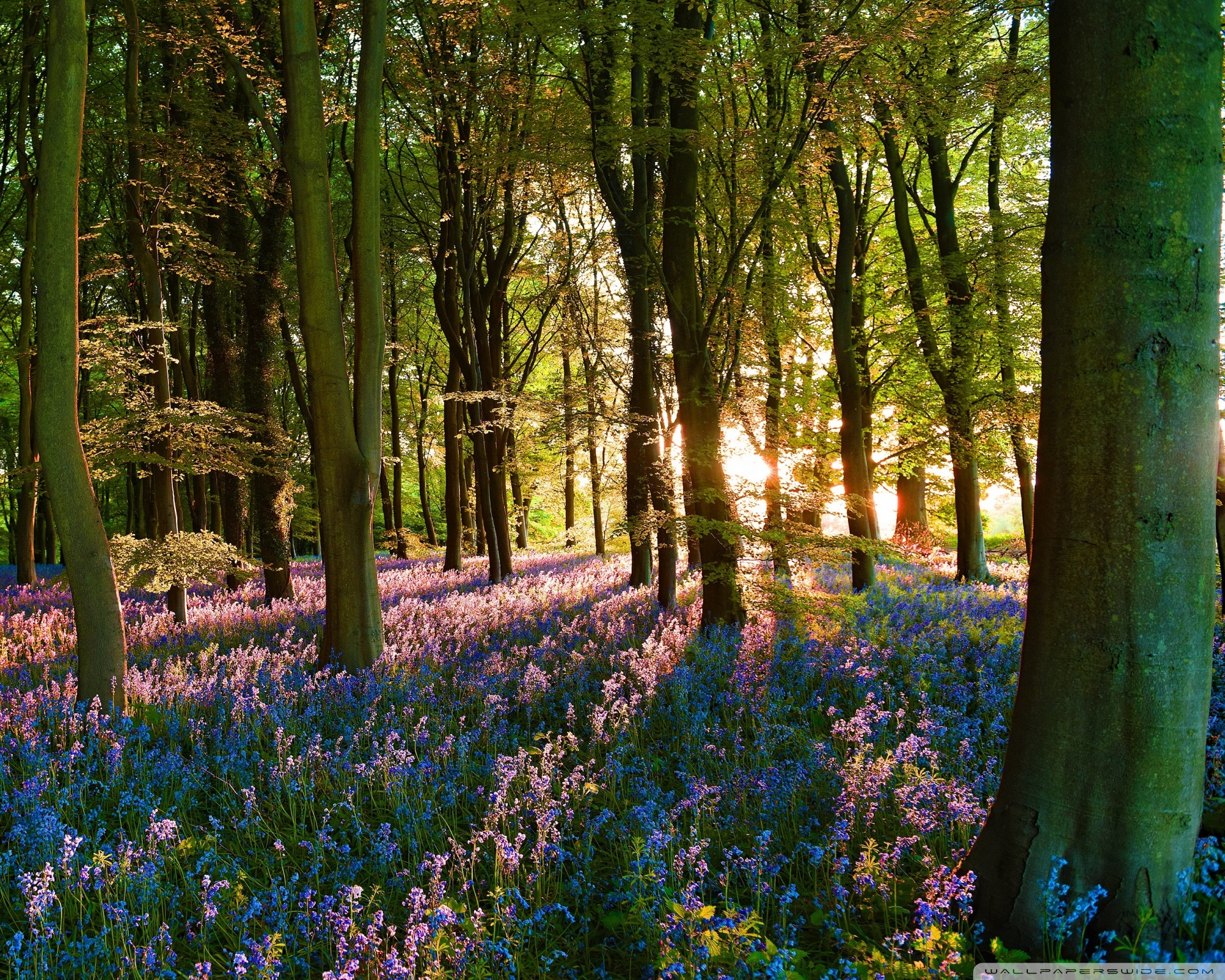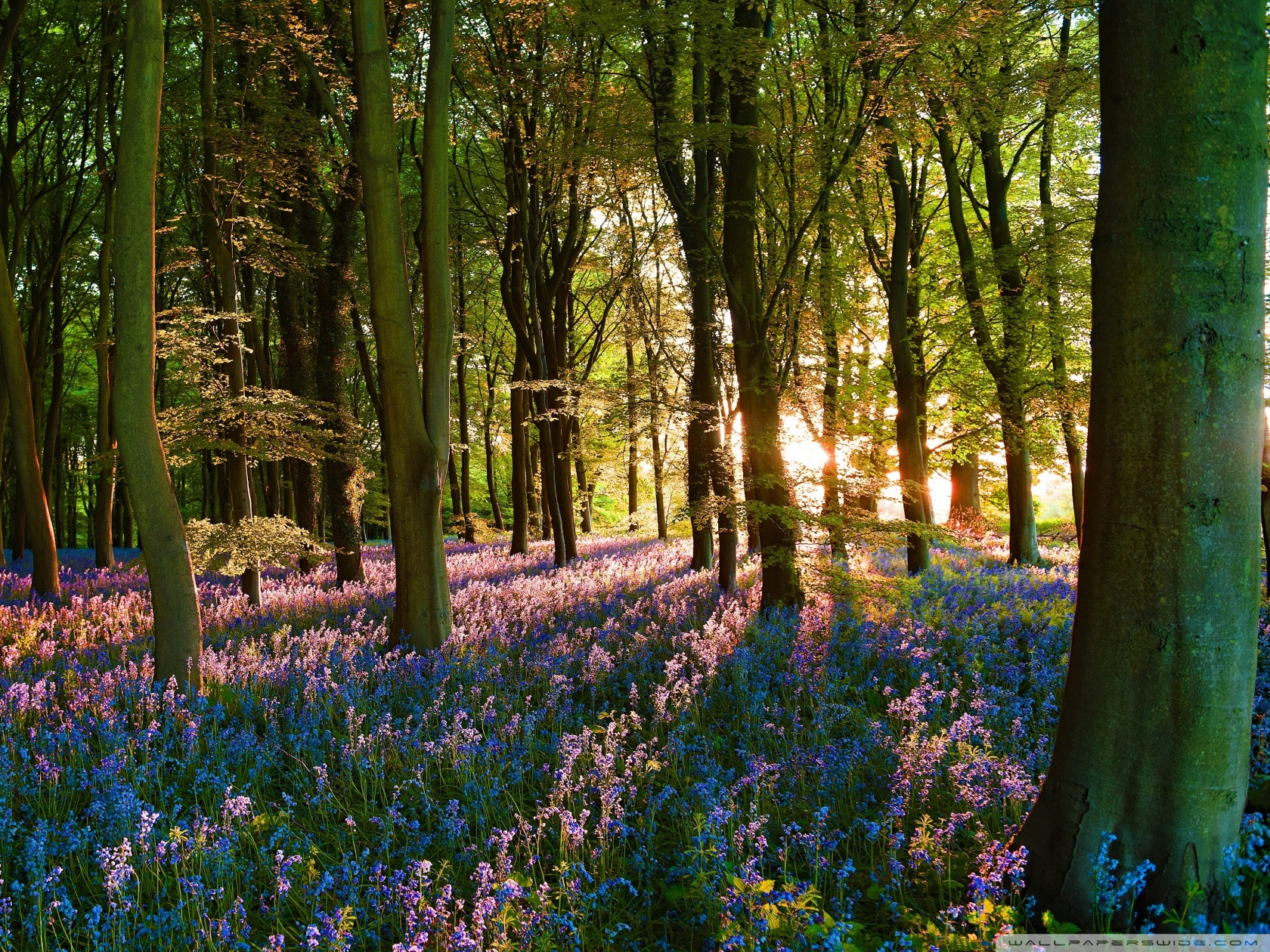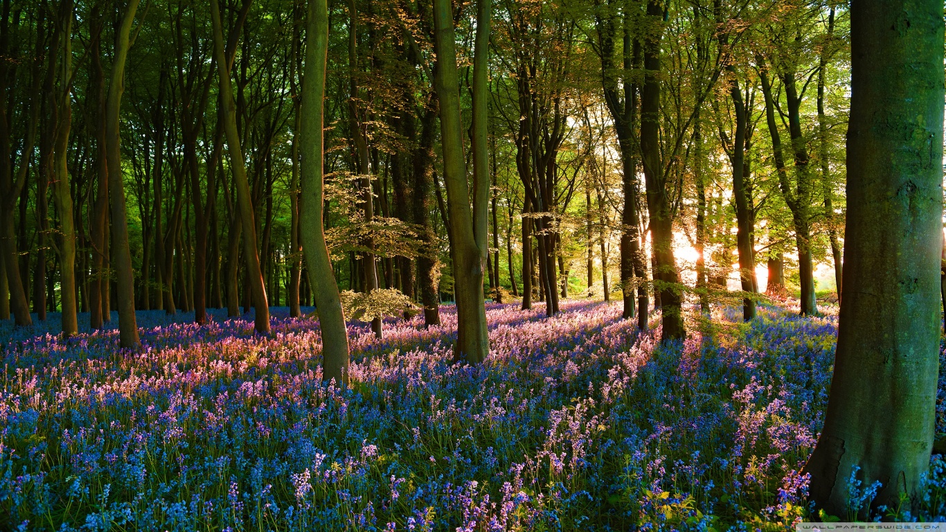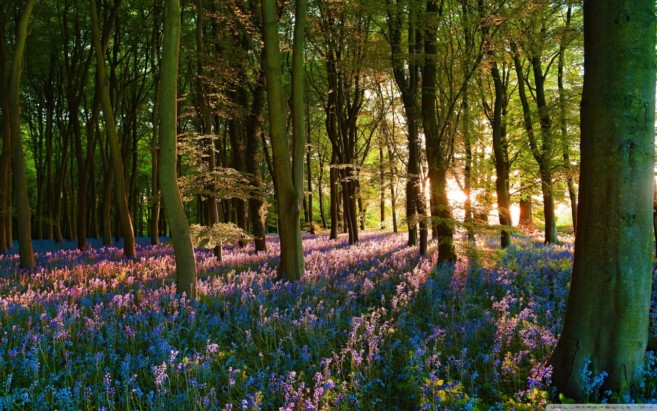 Download Woodland Scene with Violet Blossoms 4K UHD Wallpaper