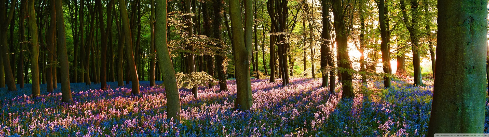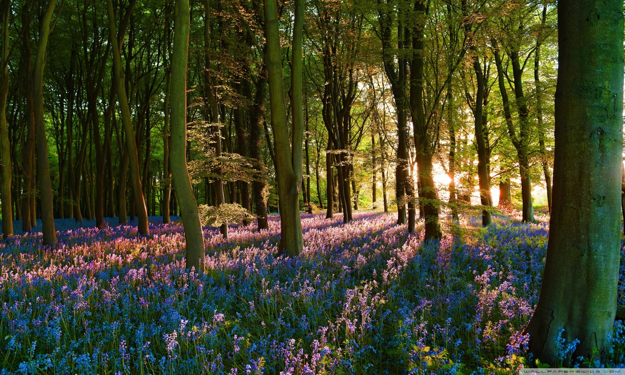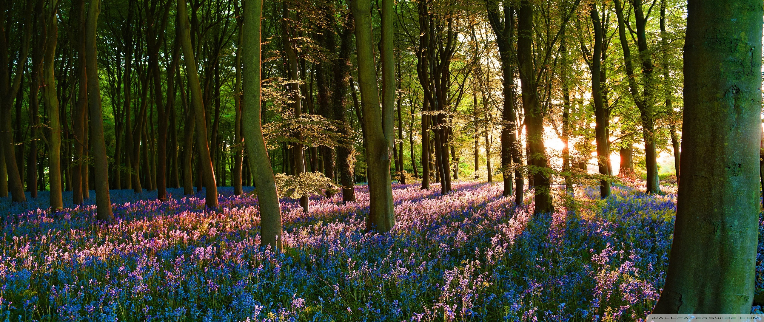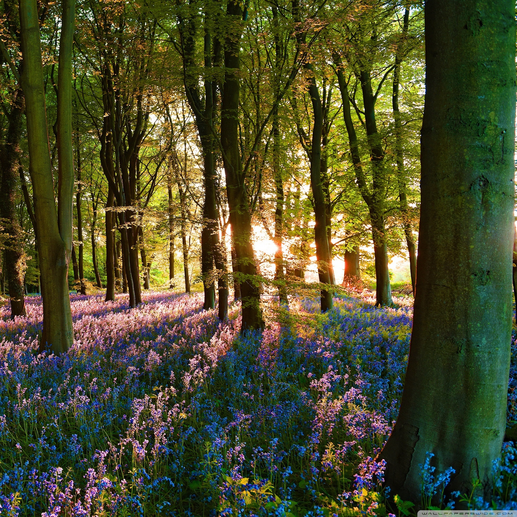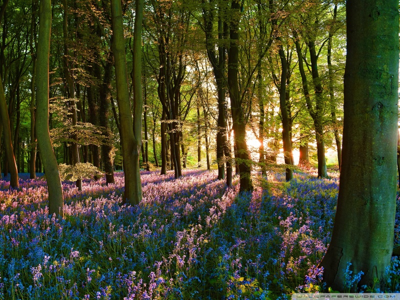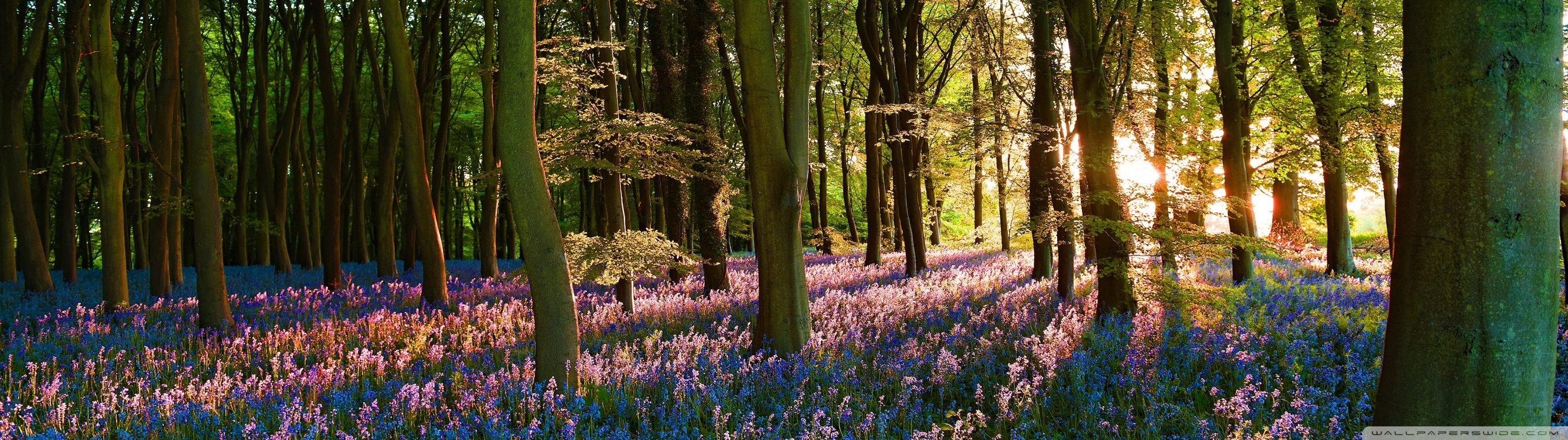 Download Woodland Scene with Violet Blossoms 4K UHD Wallpaper