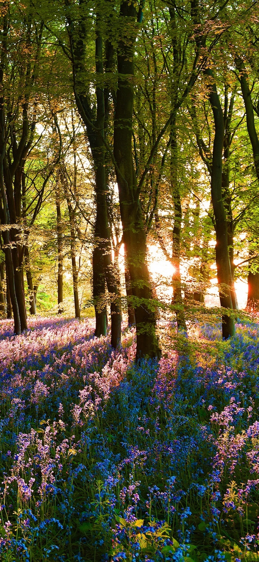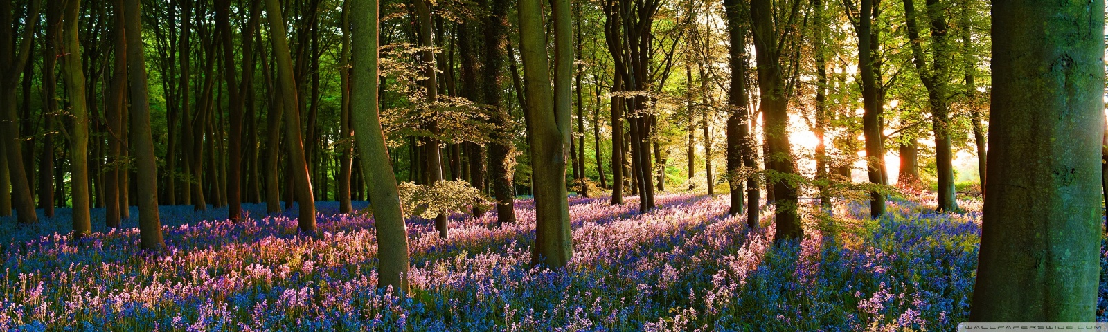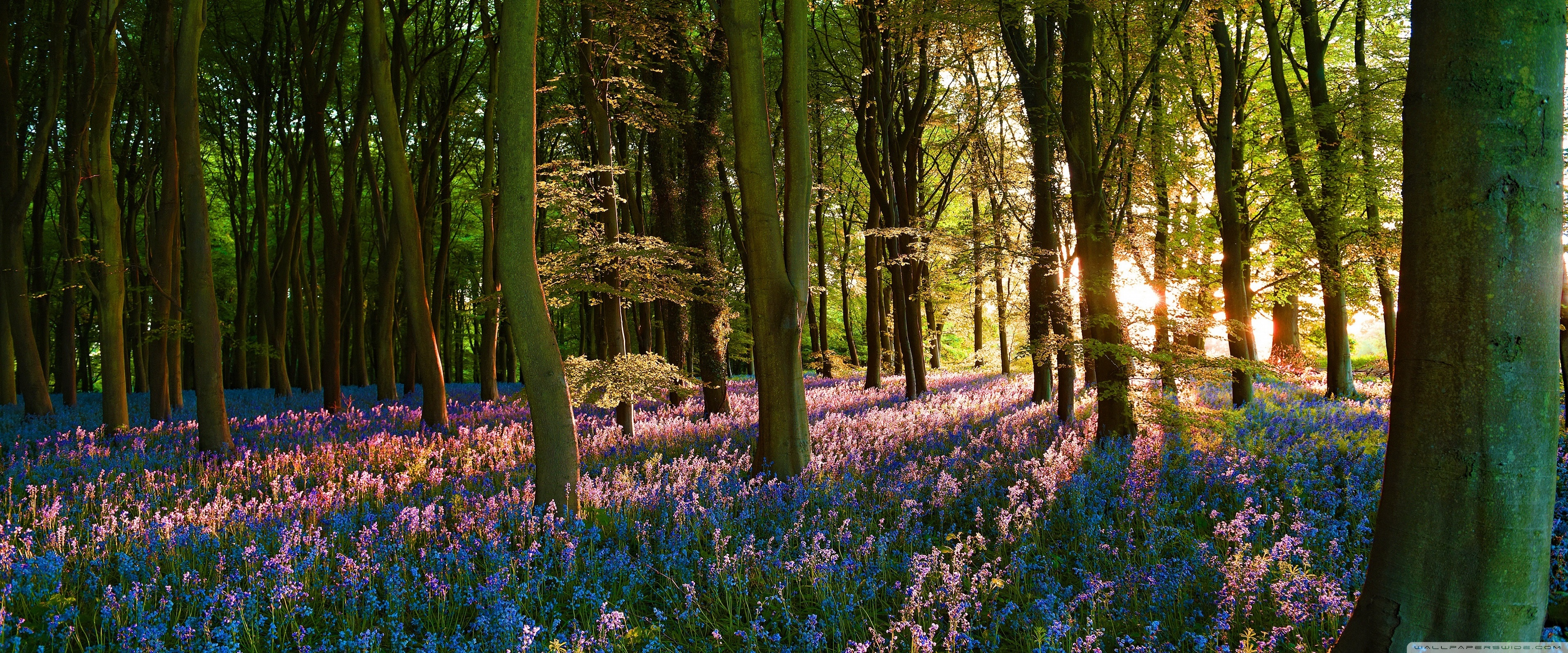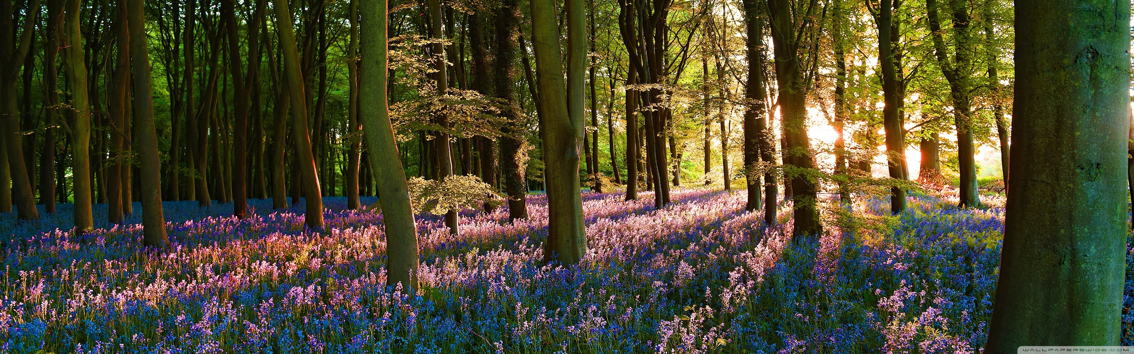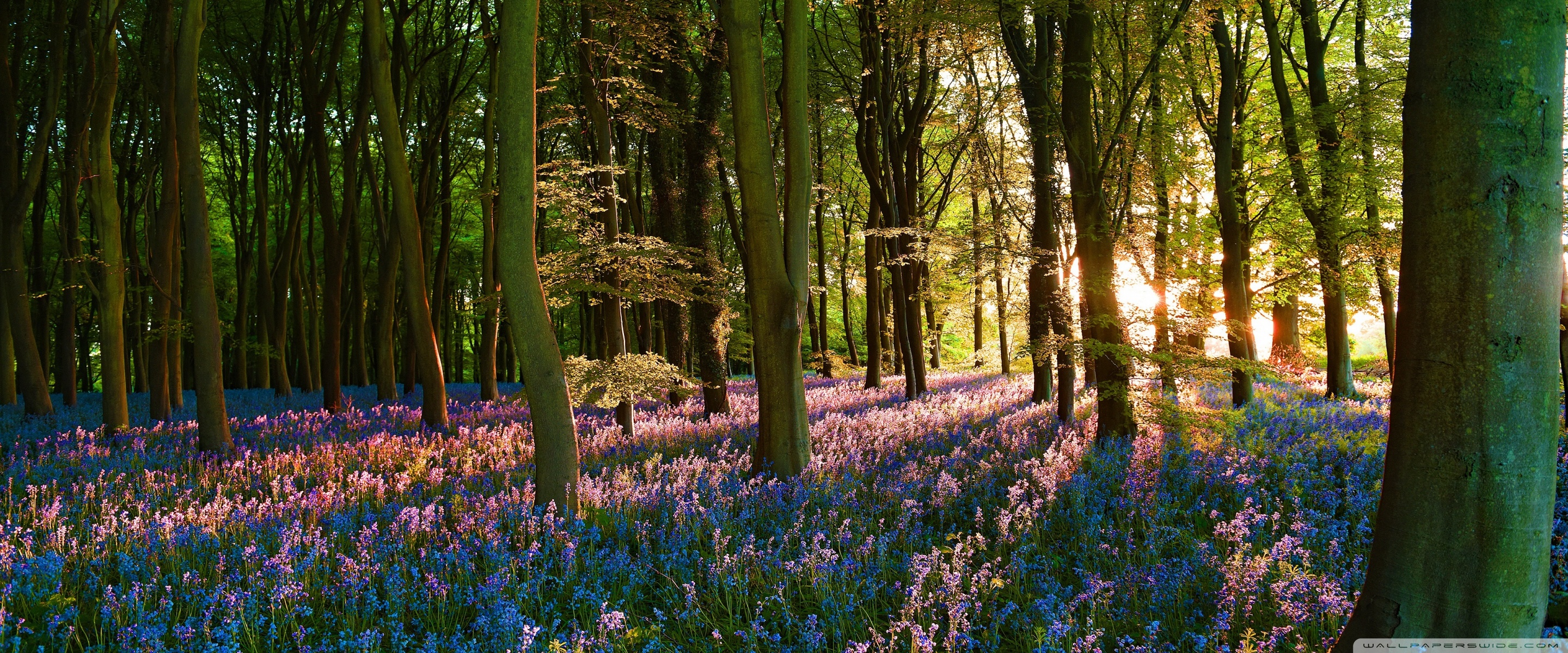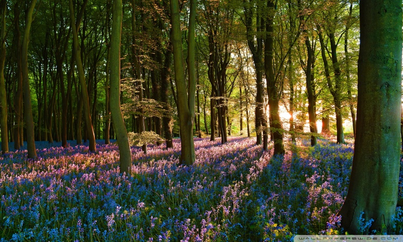 Download Woodland Scene with Violet Blossoms 4K UHD Wallpaper