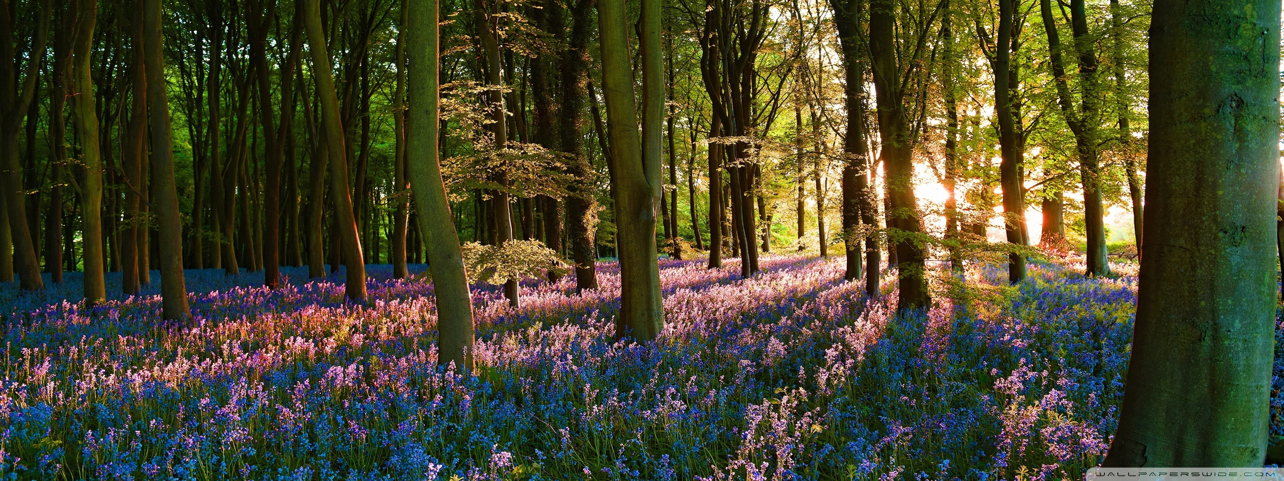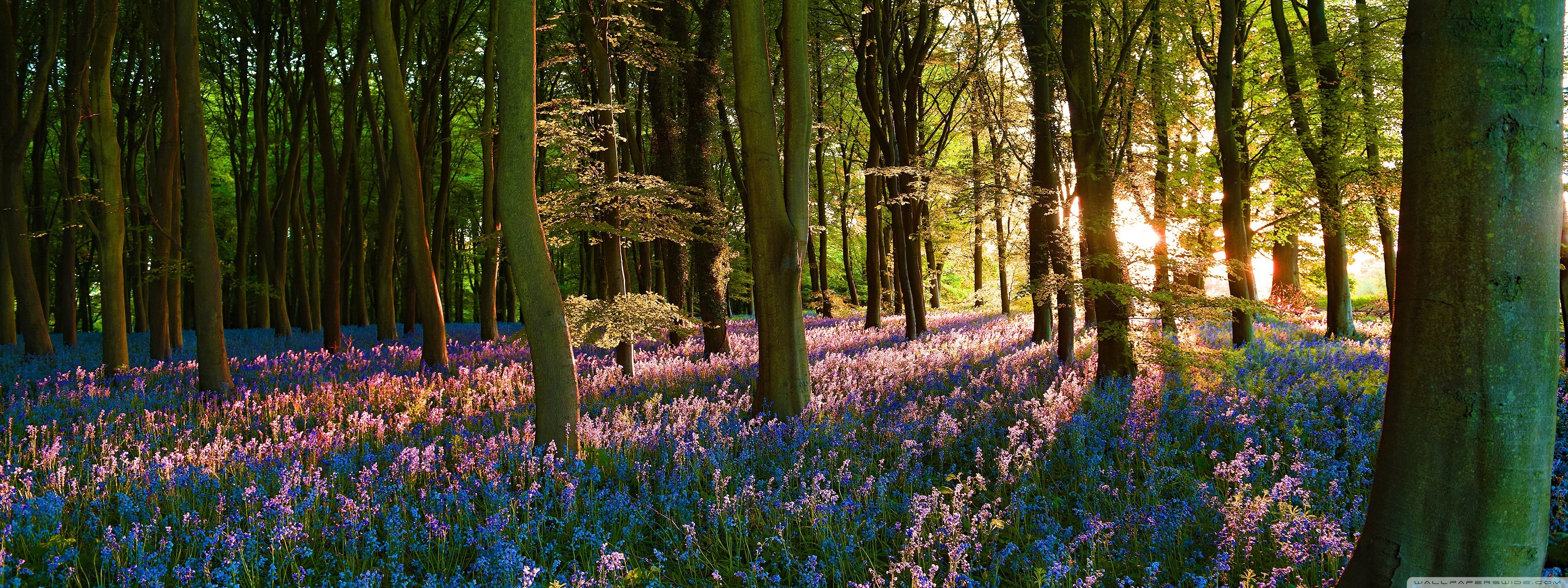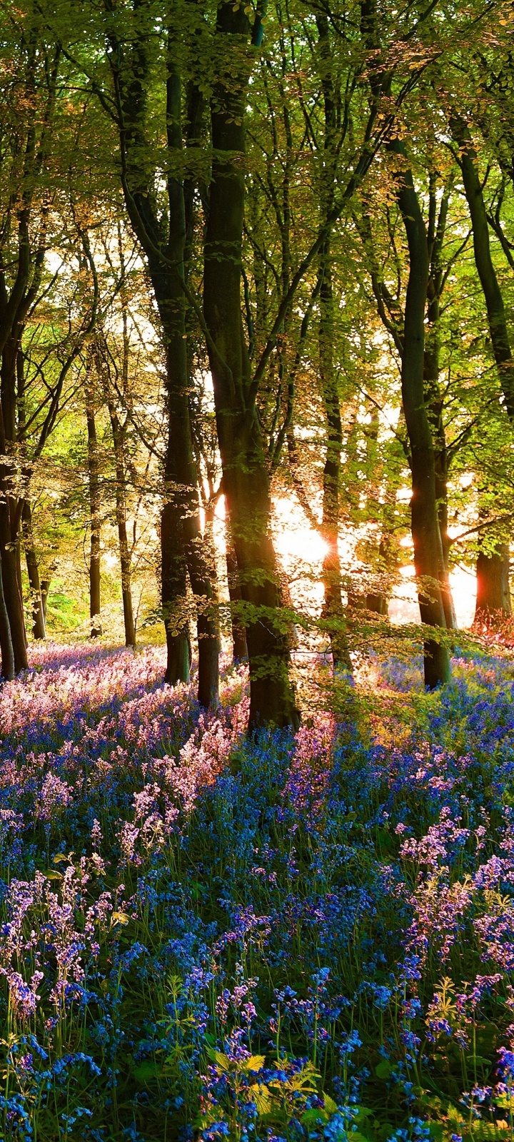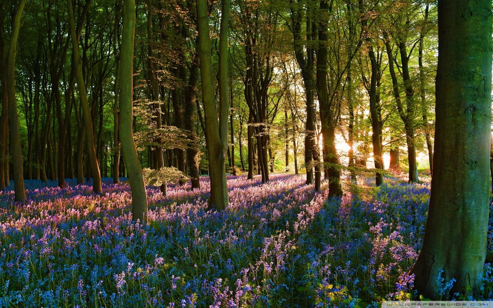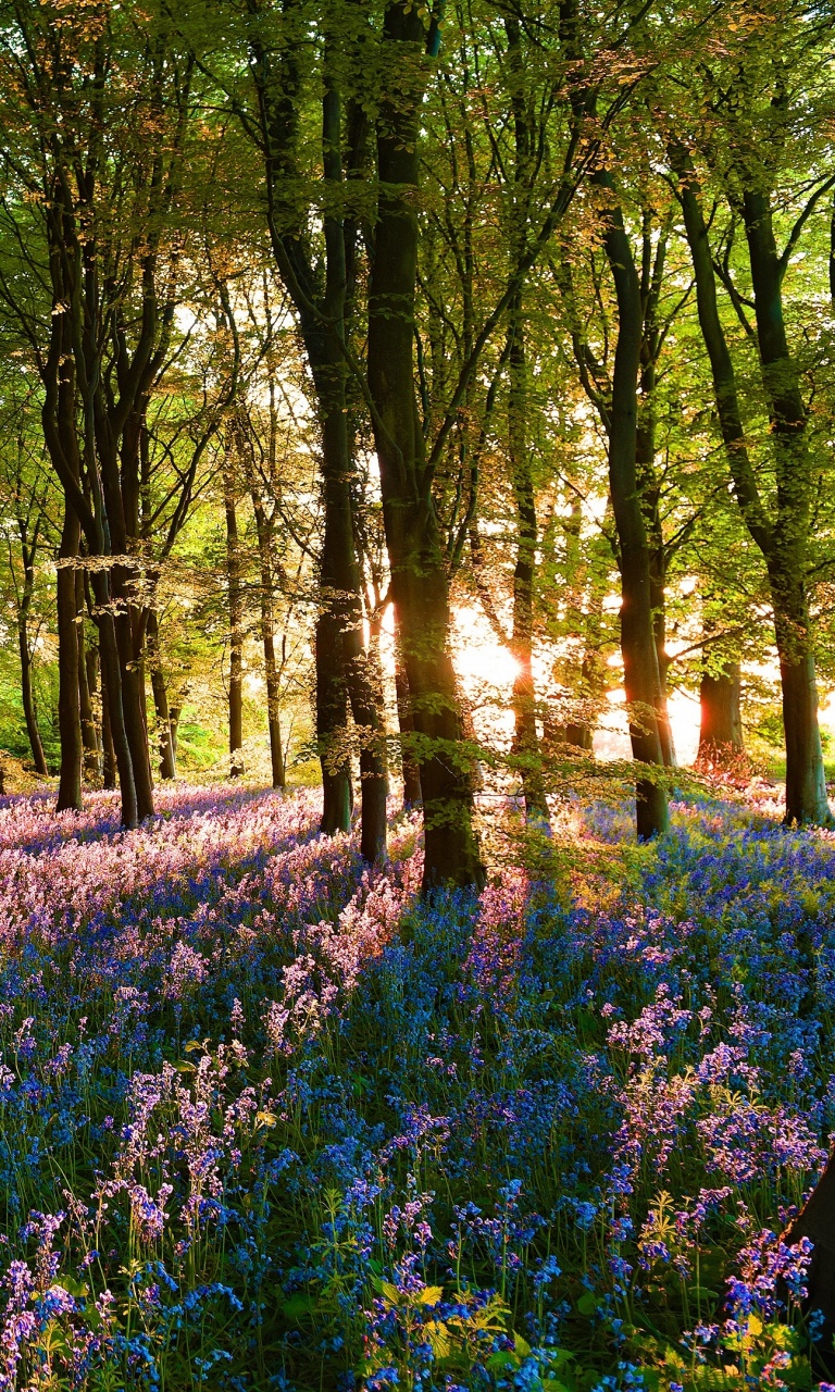 Download Woodland Scene with Violet Blossoms 4K UHD Wallpaper