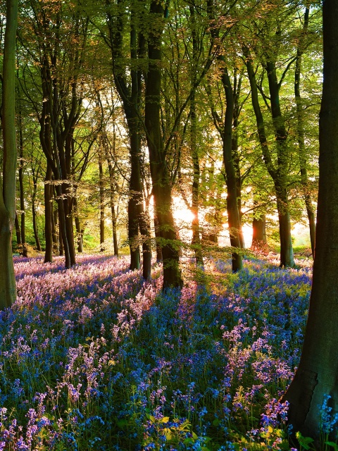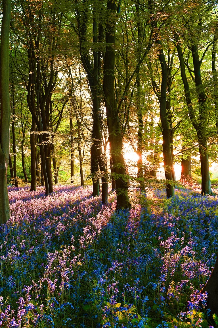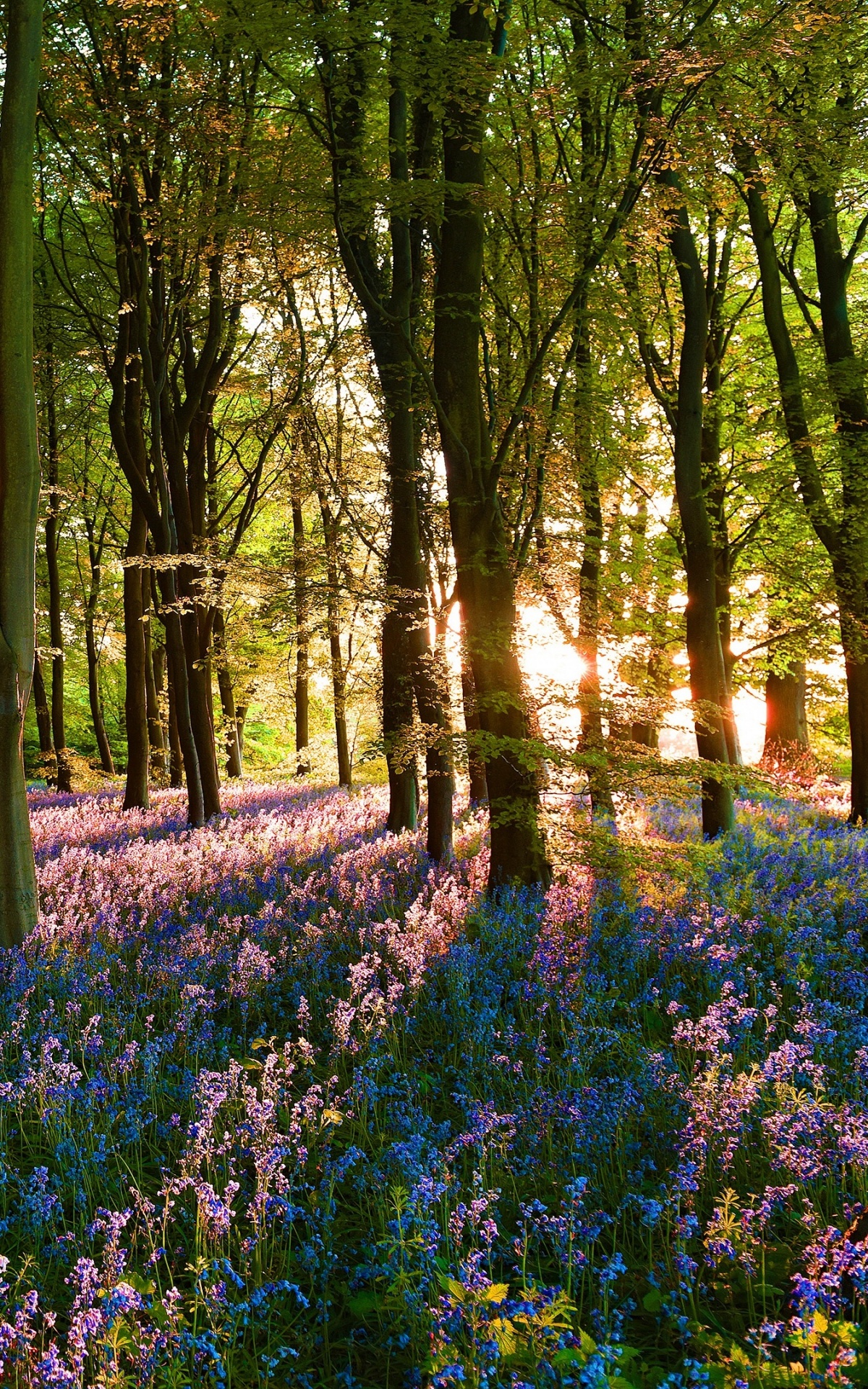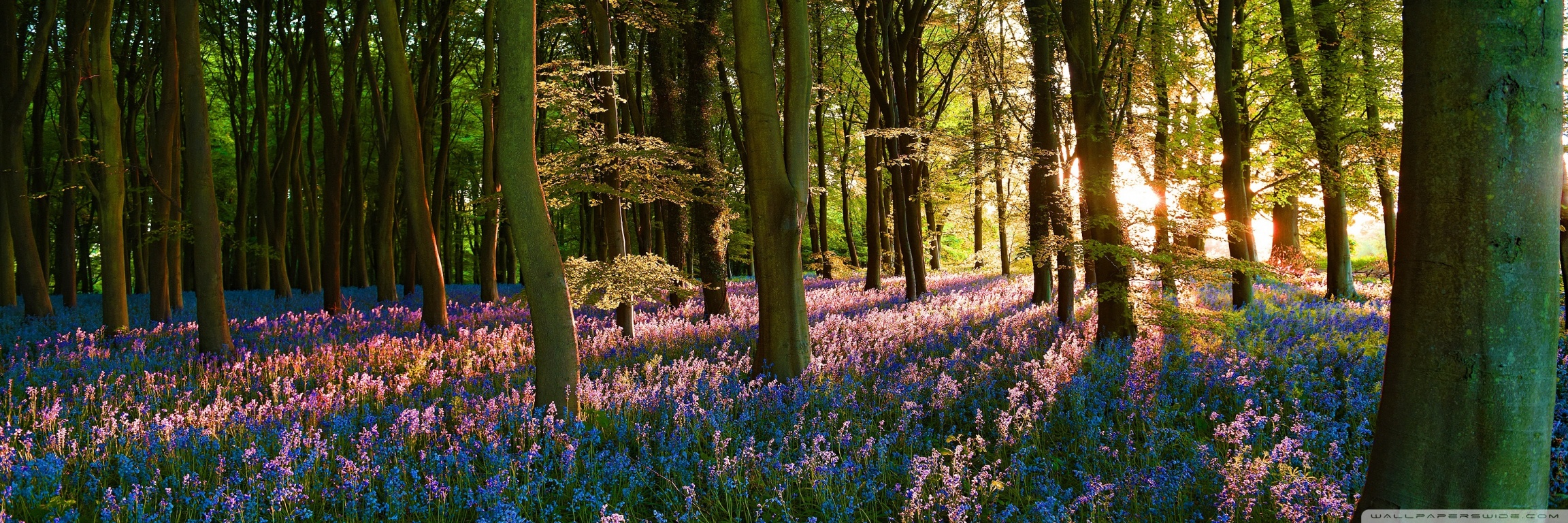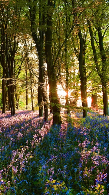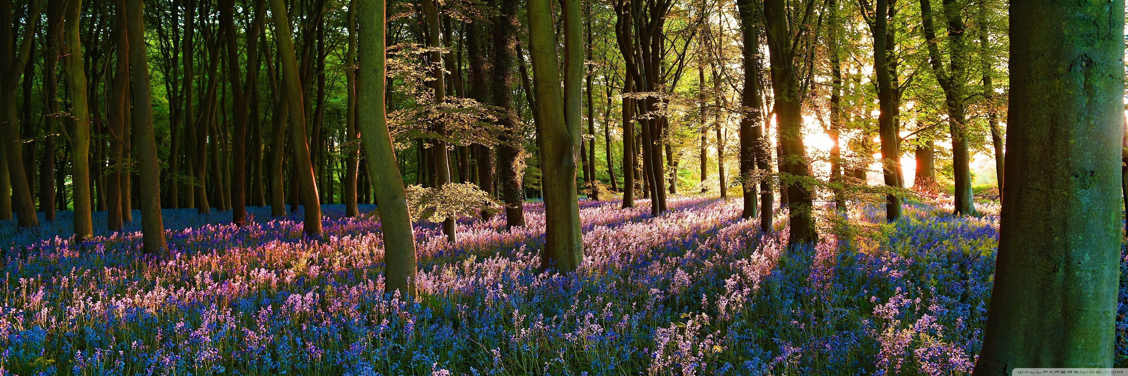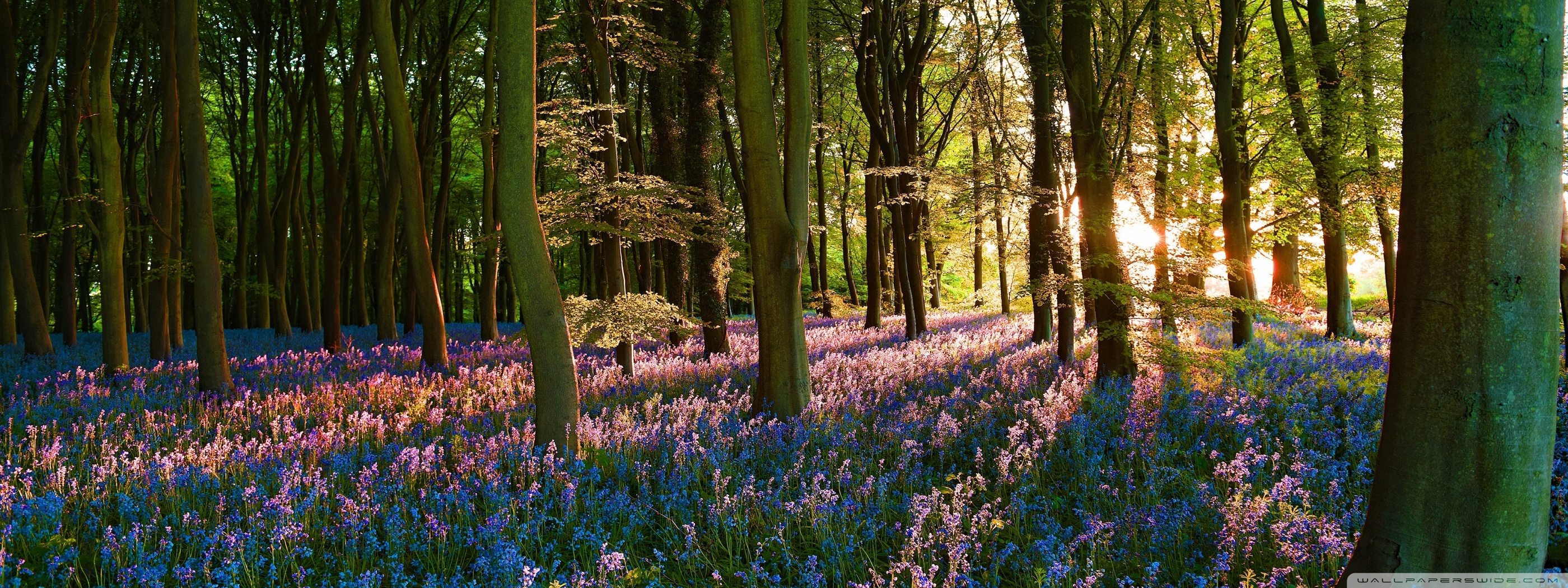 Download Woodland Scene with Violet Blossoms 4K UHD Wallpaper