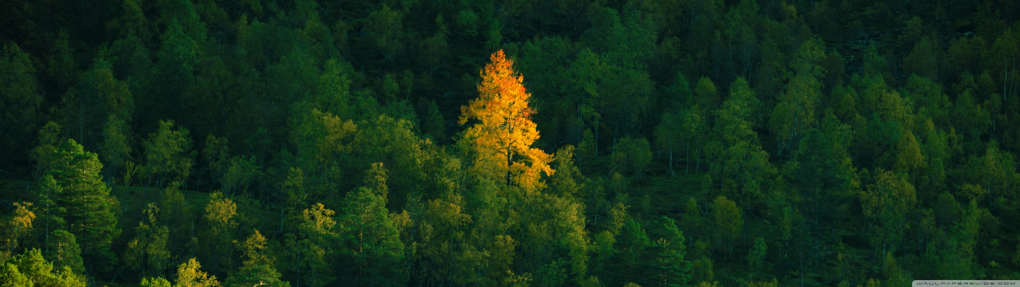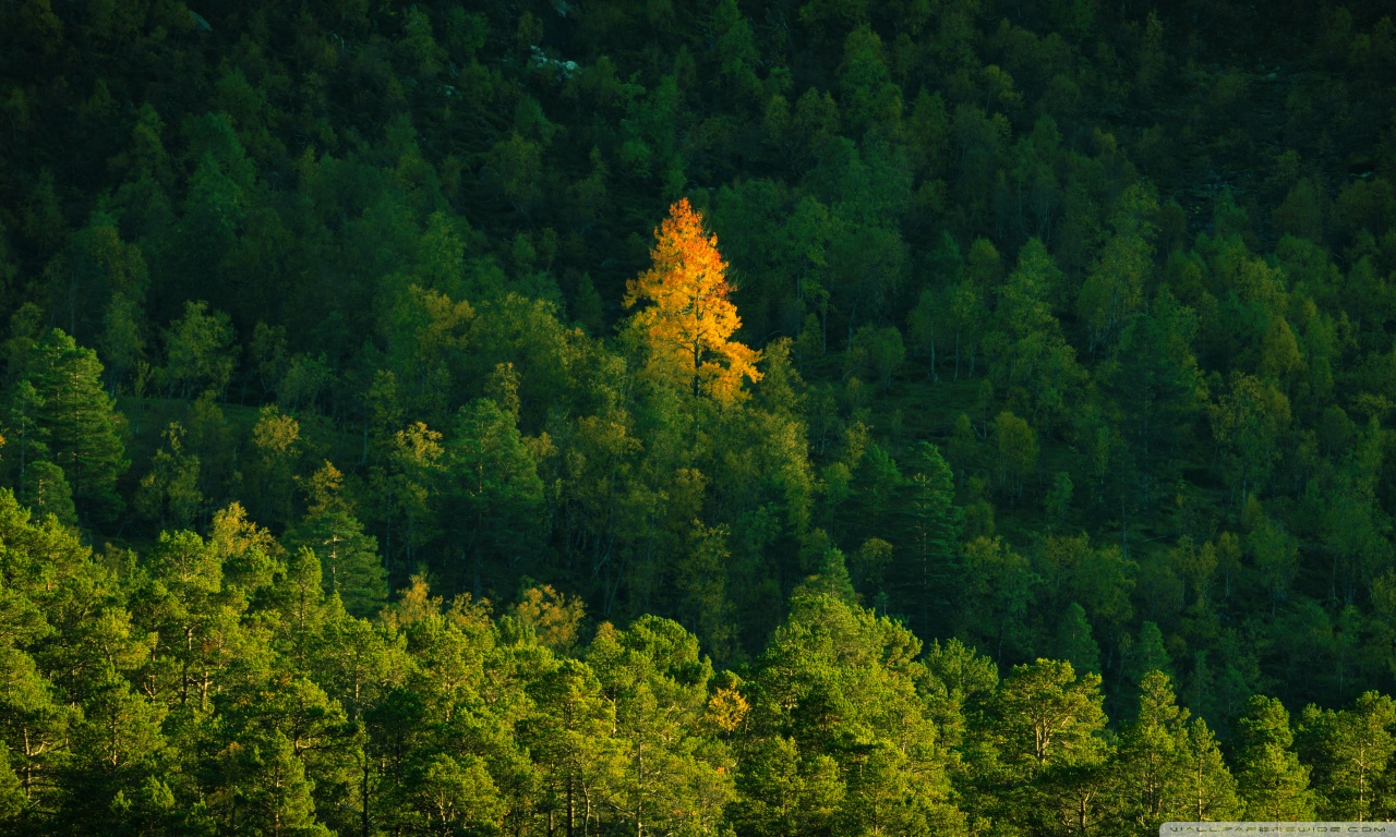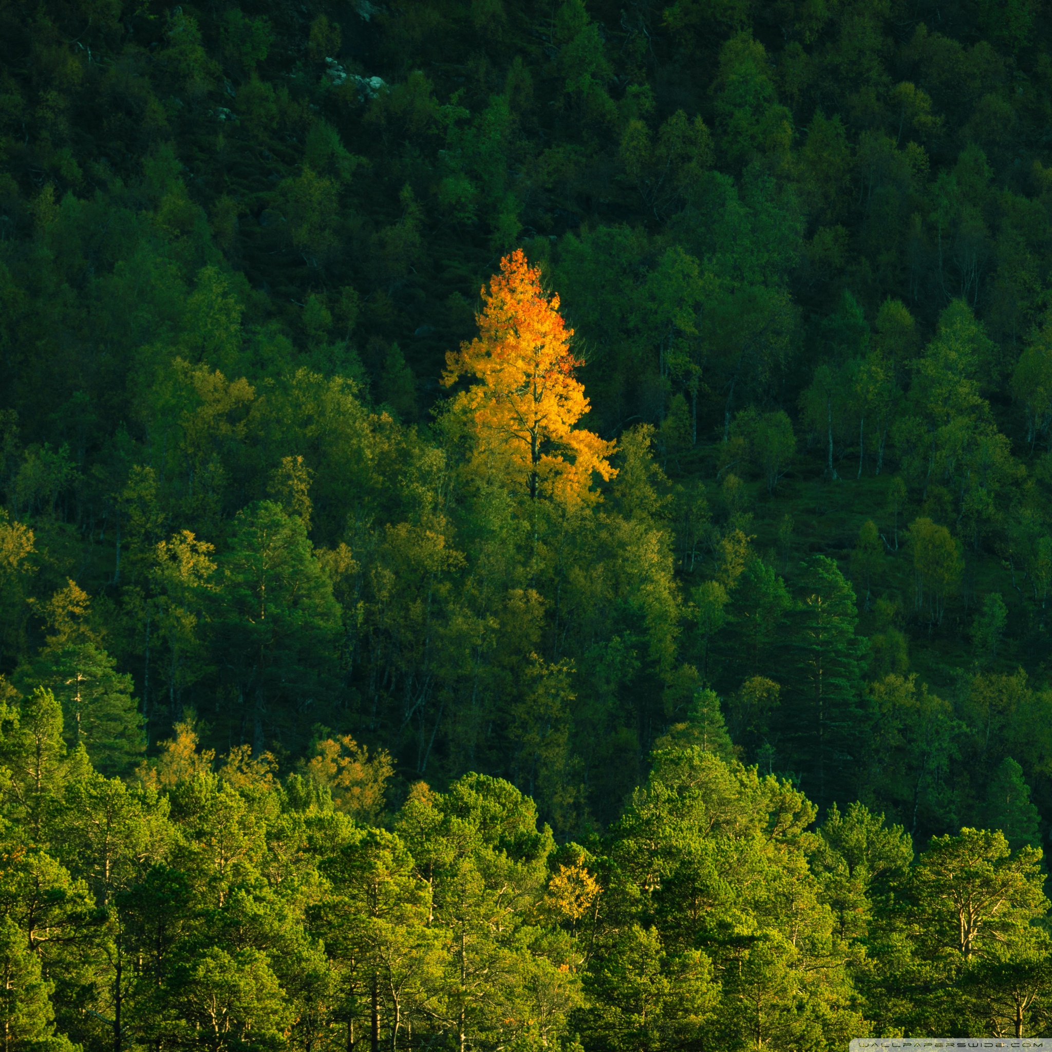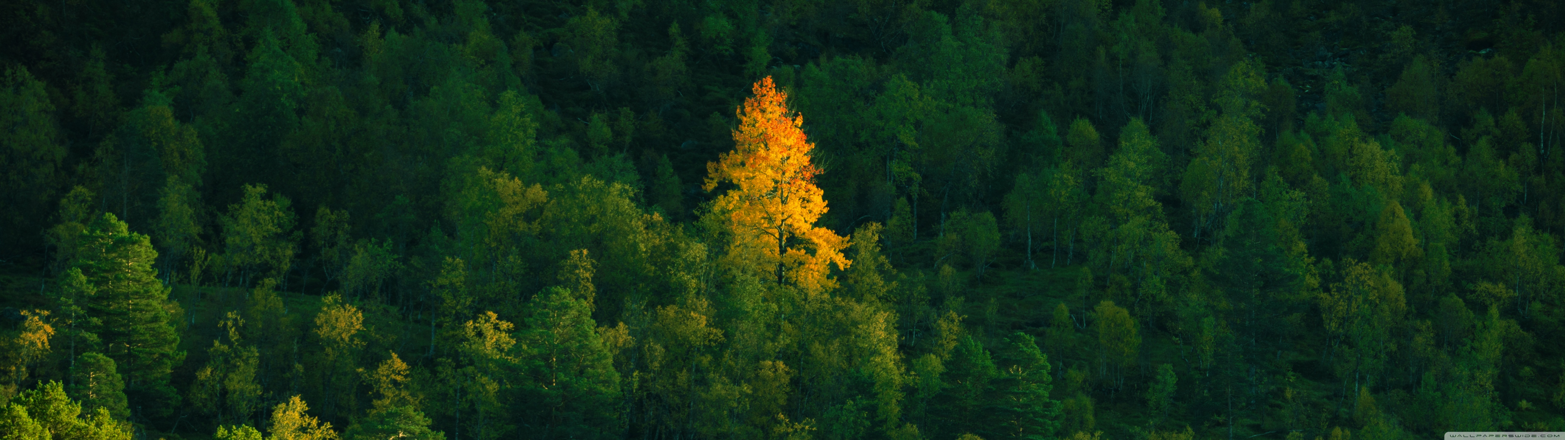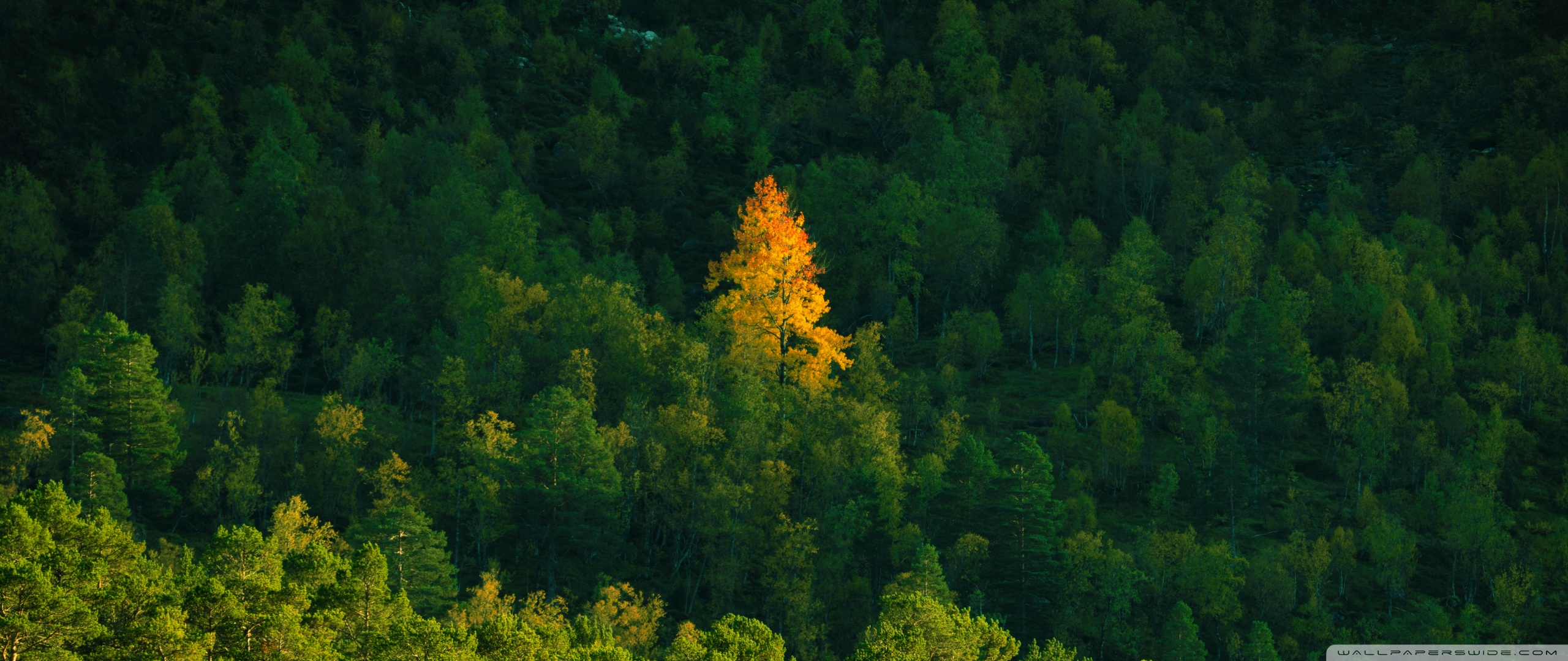 Download Yellow Birch Tree Amidst Pine Forest 4K UHD Wallpaper