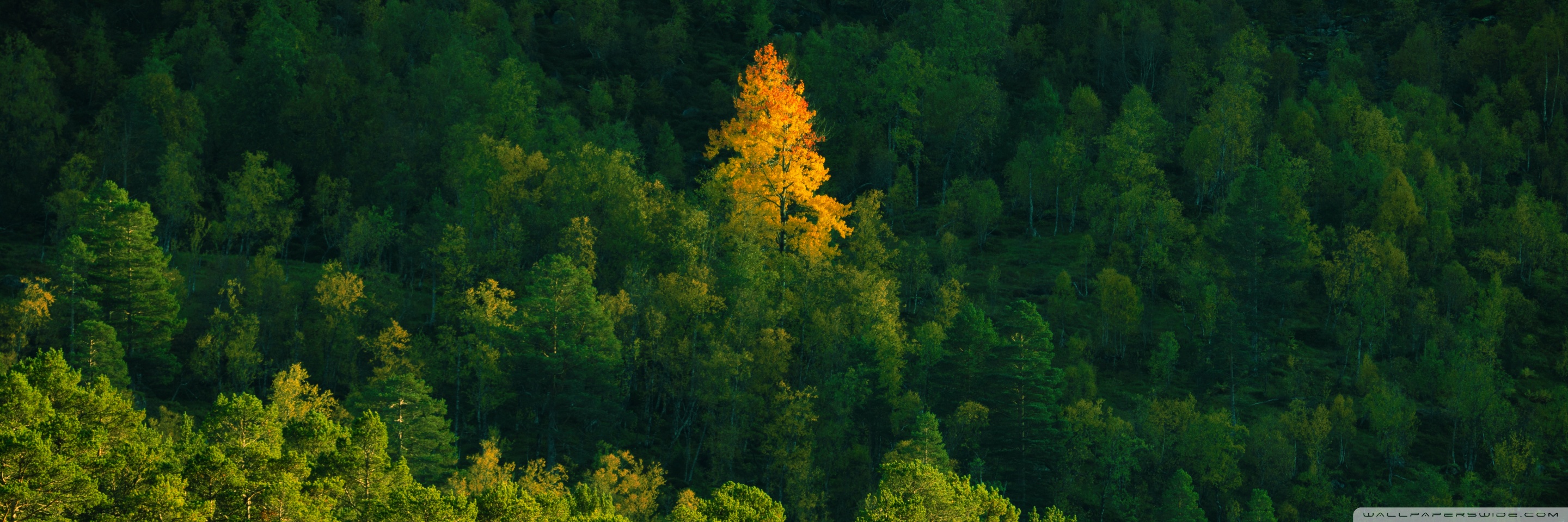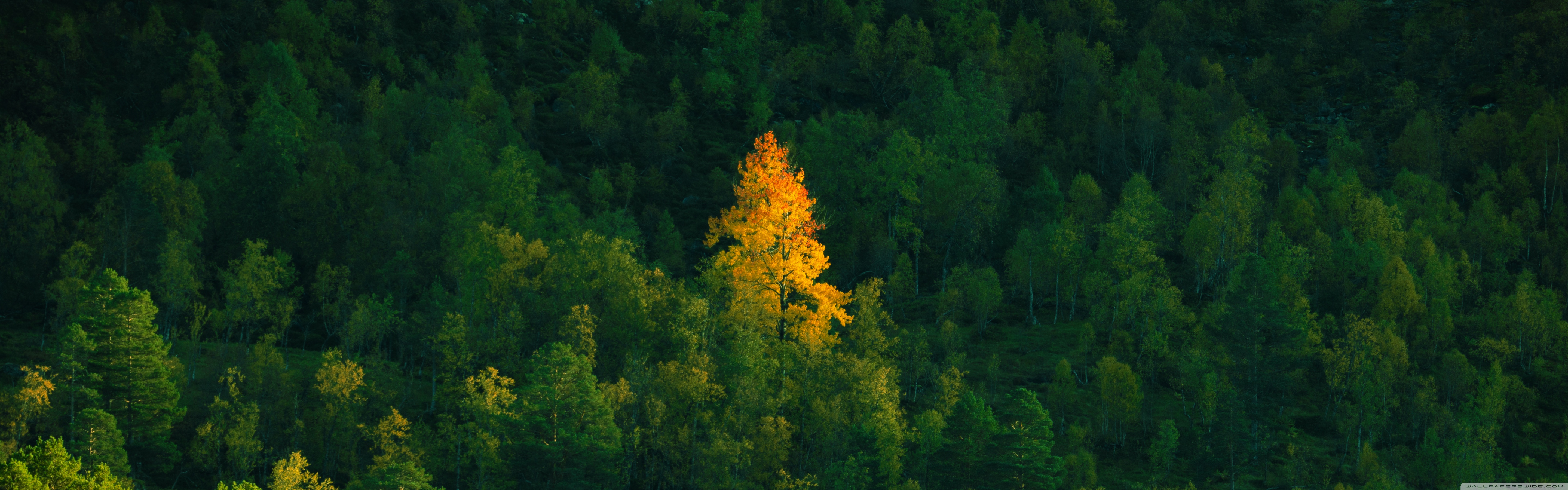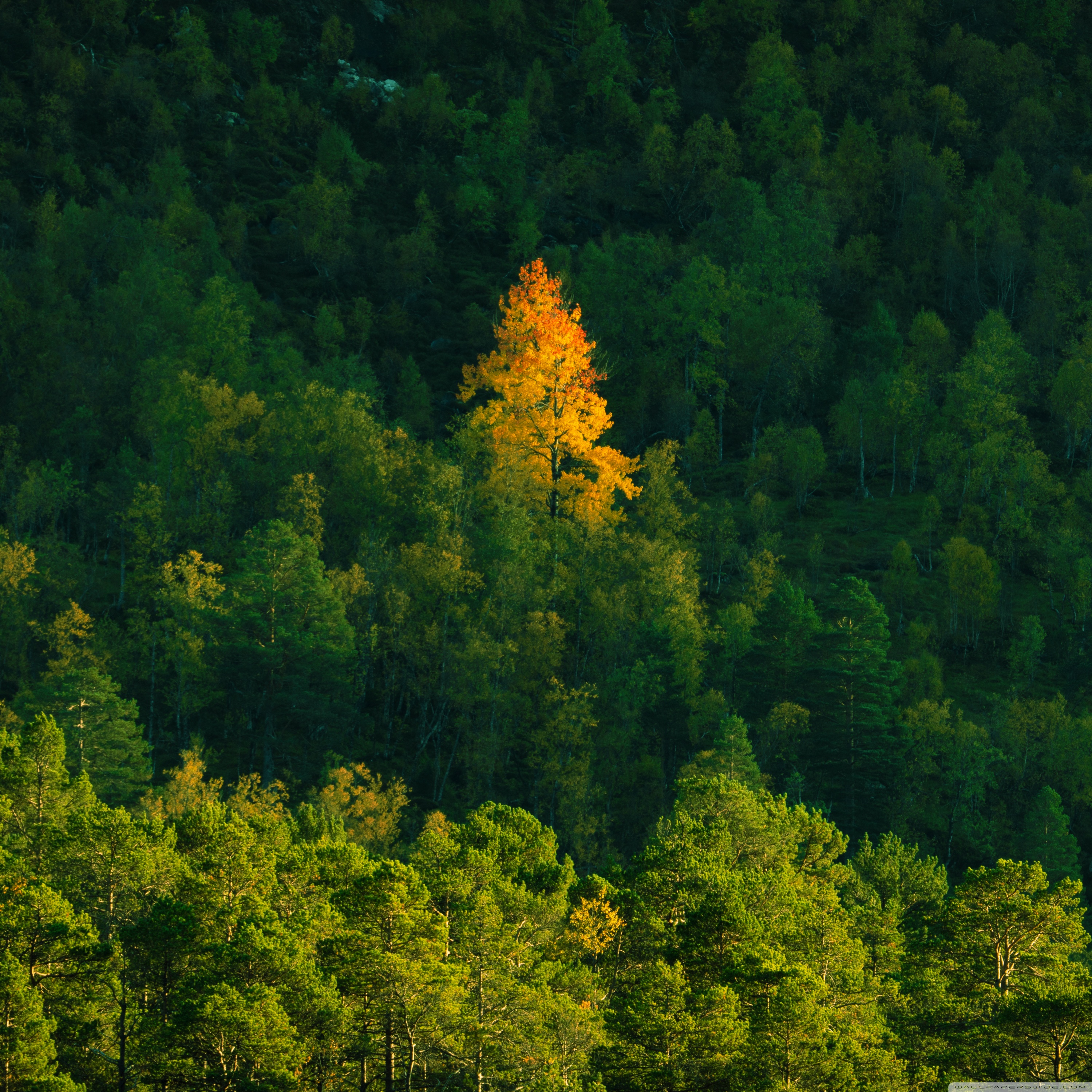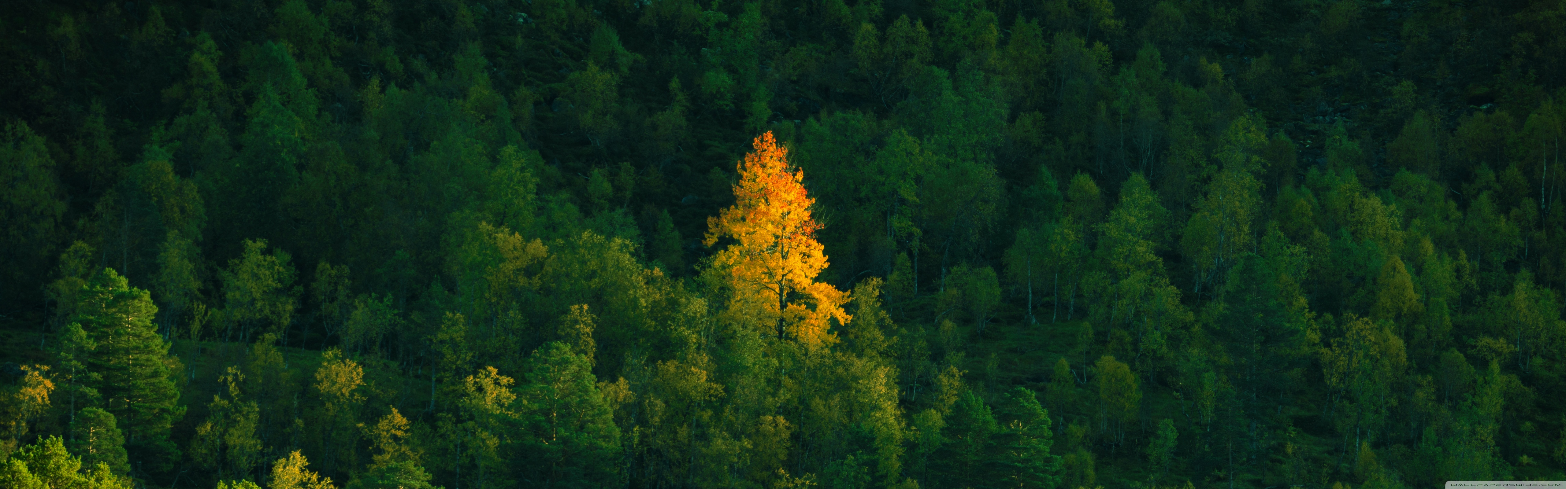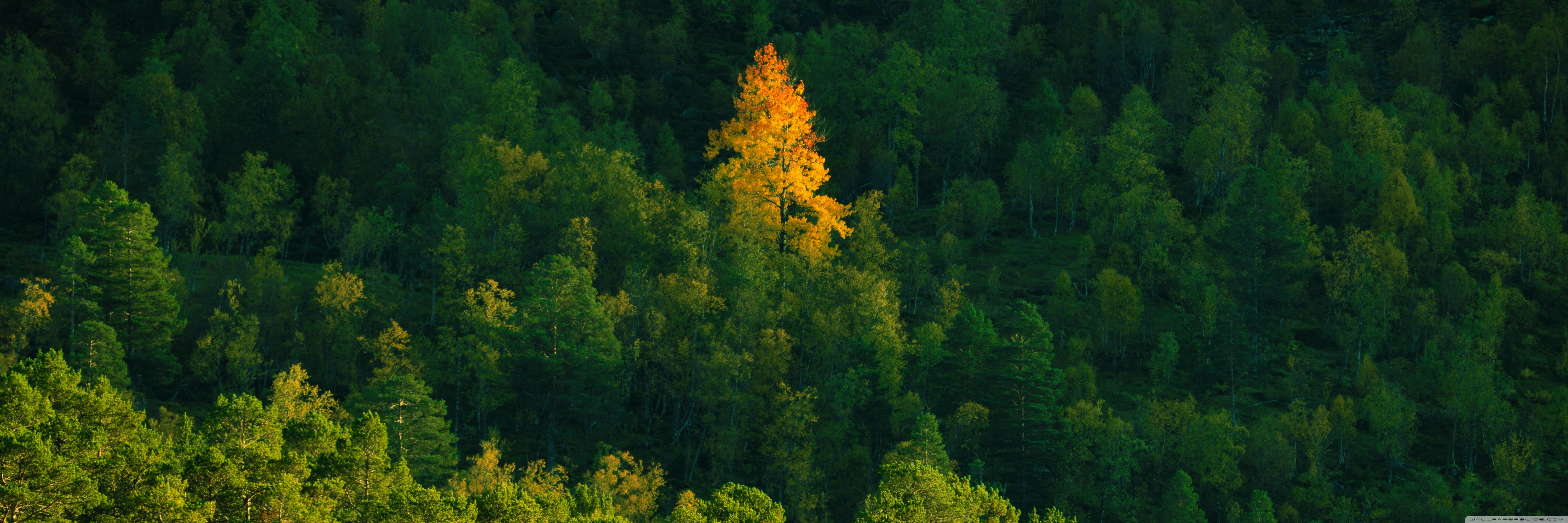 Download Yellow Birch Tree Amidst Pine Forest 4K UHD Wallpaper