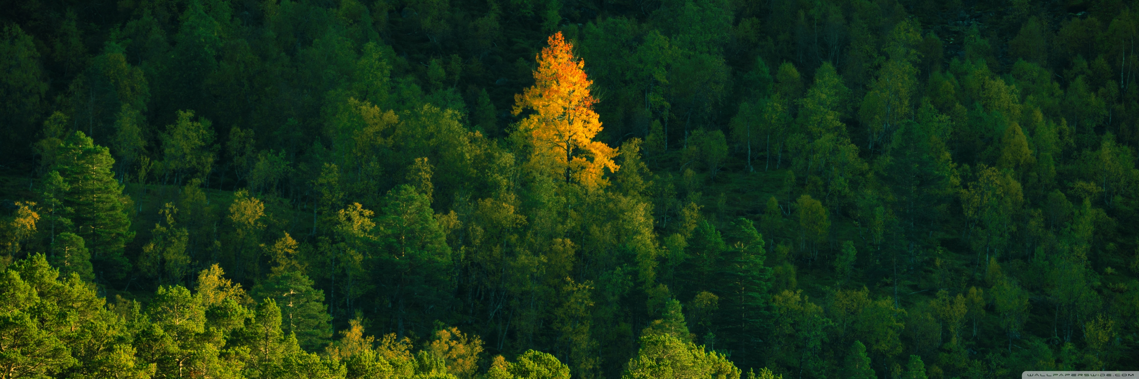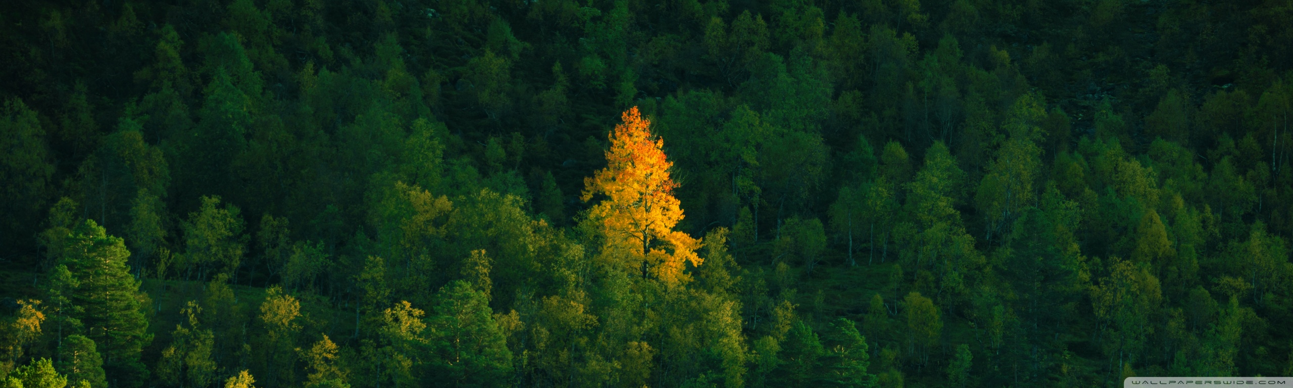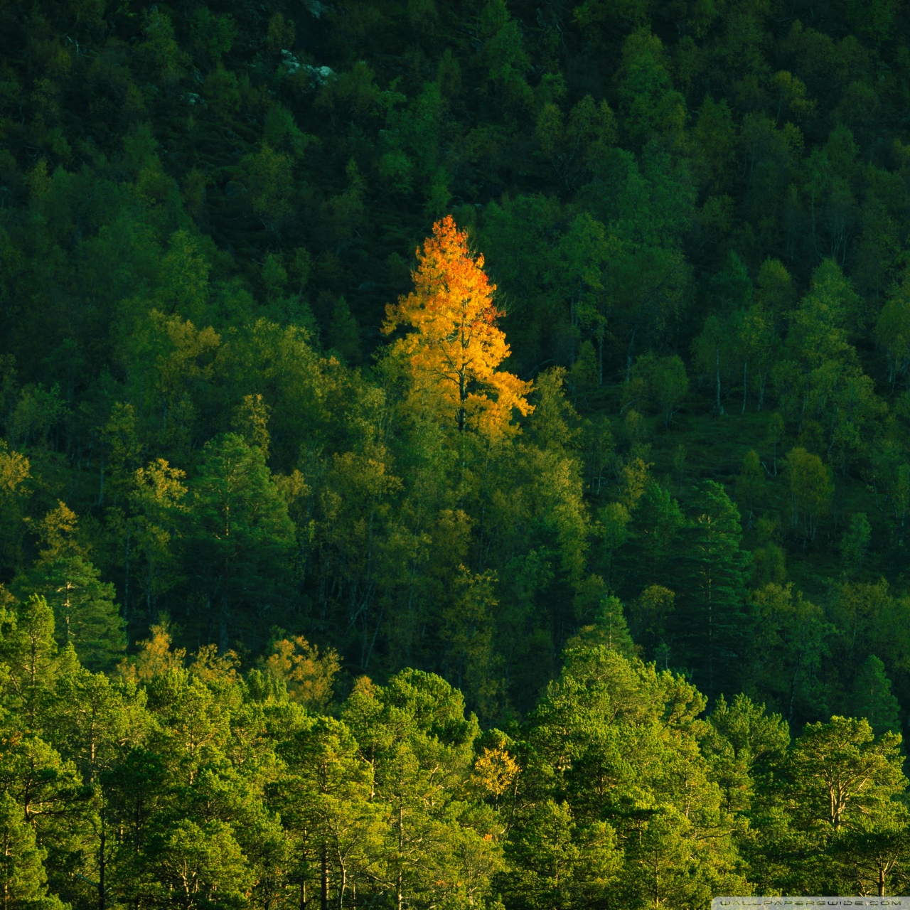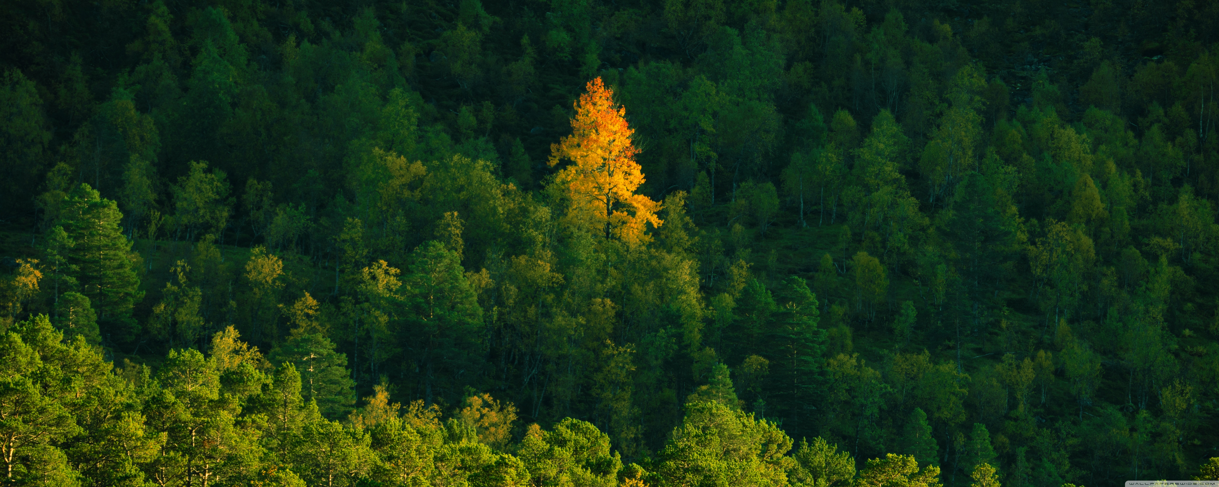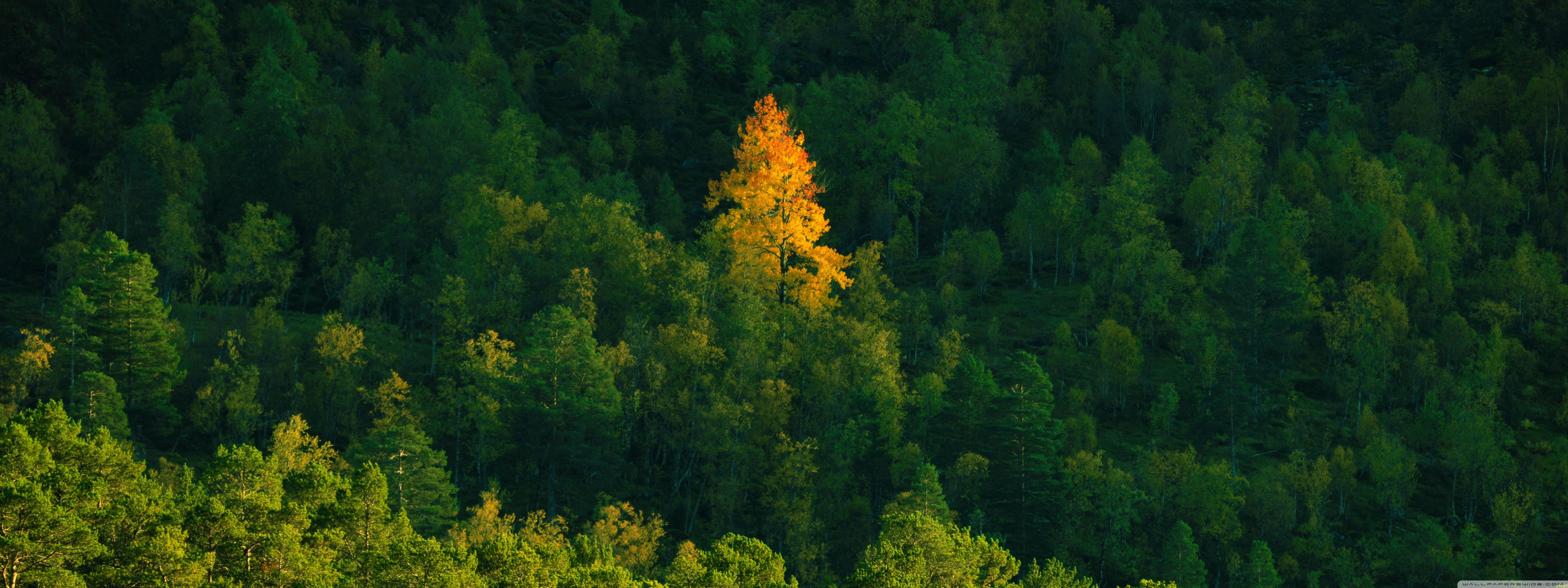 Download Yellow Birch Tree Amidst Pine Forest 4K UHD Wallpaper
