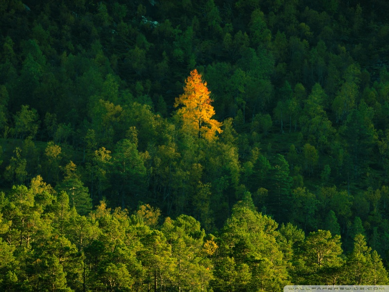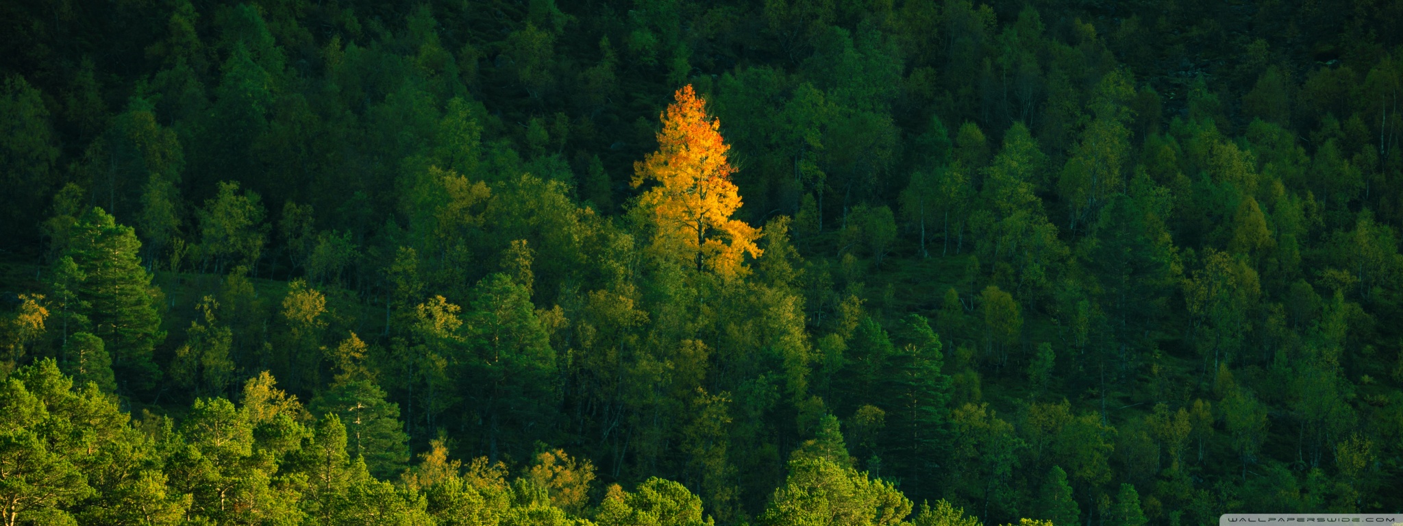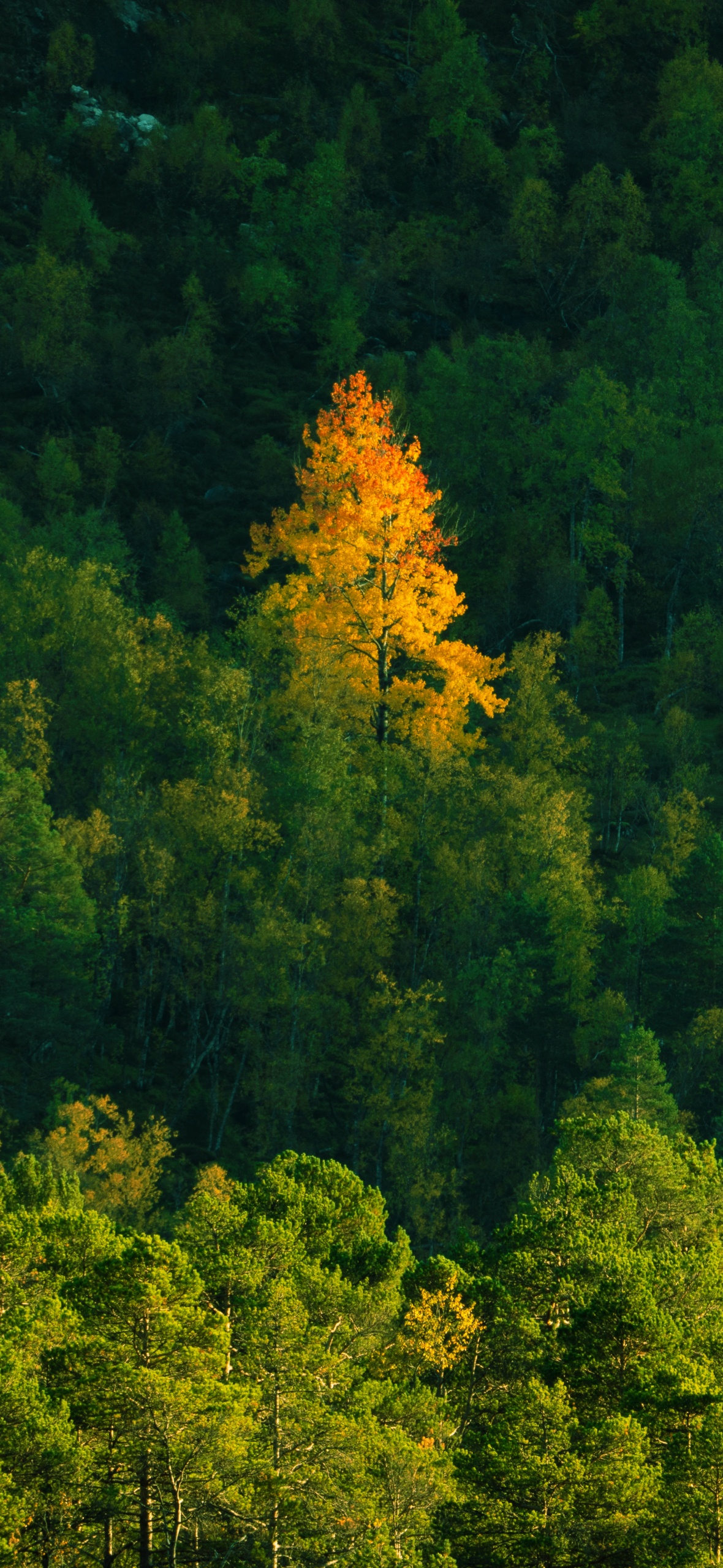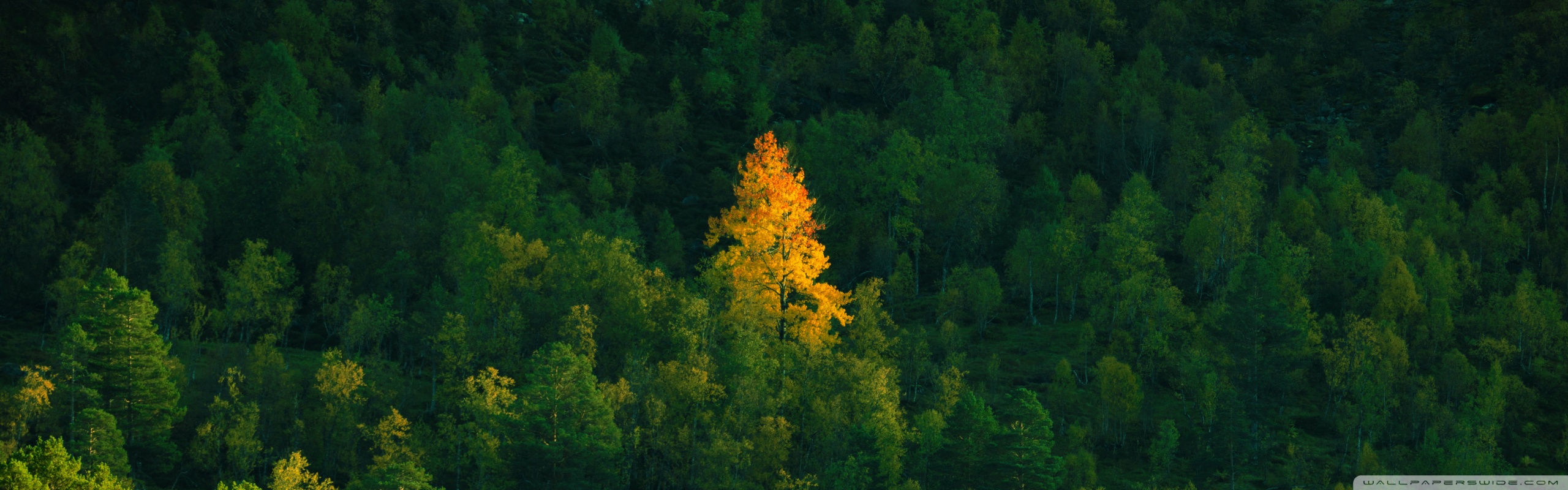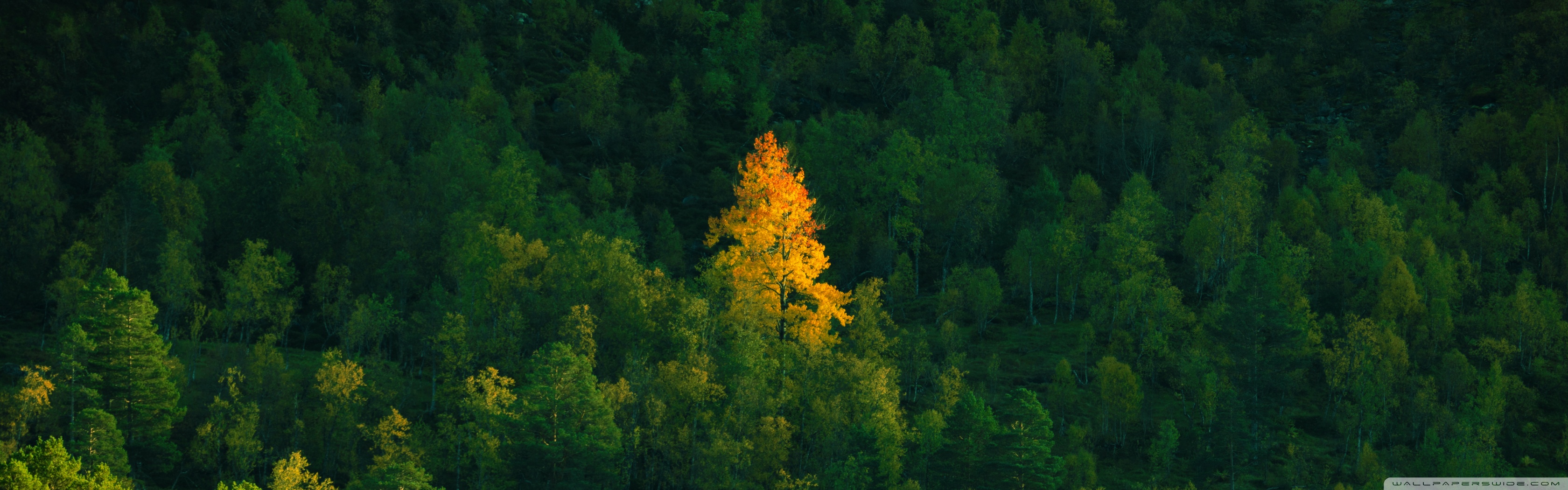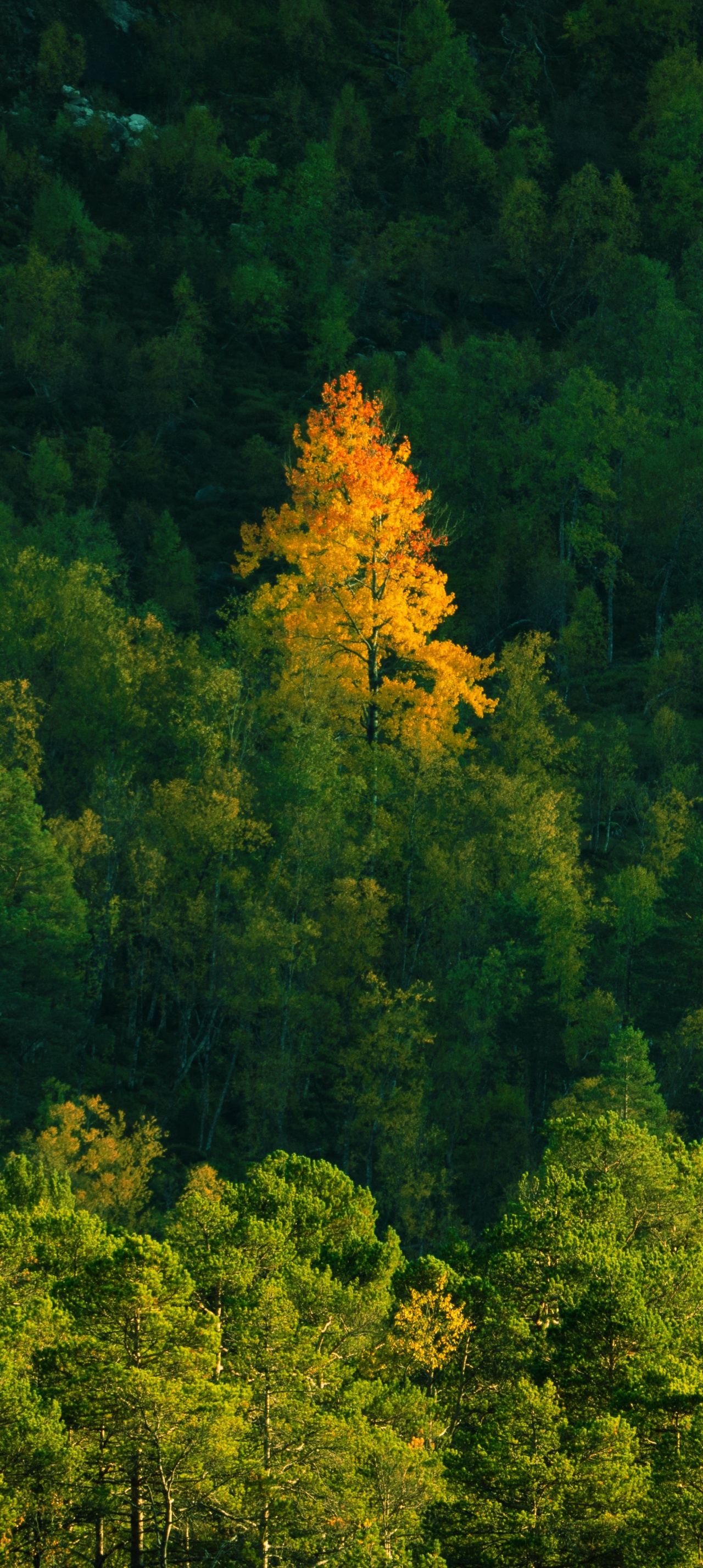 Download Yellow Birch Tree Amidst Pine Forest 4K UHD Wallpaper