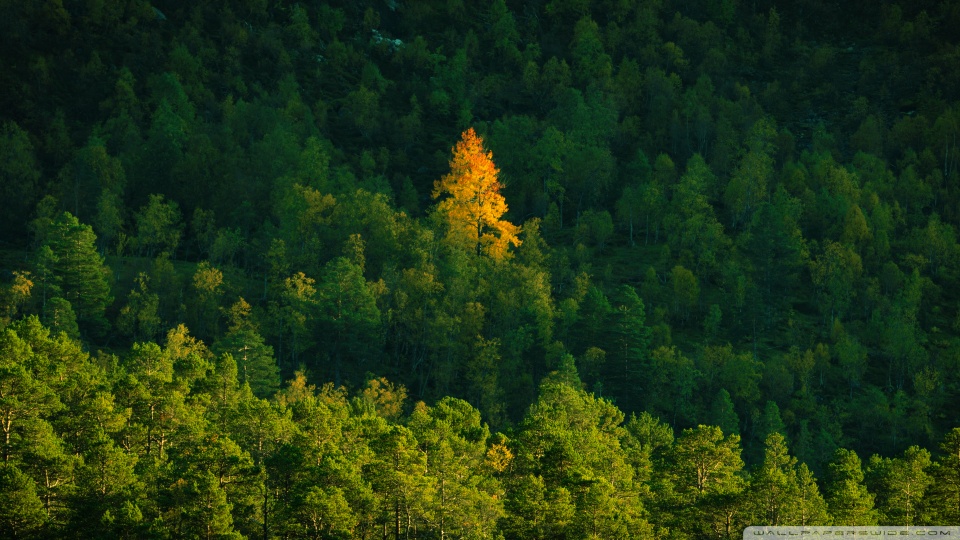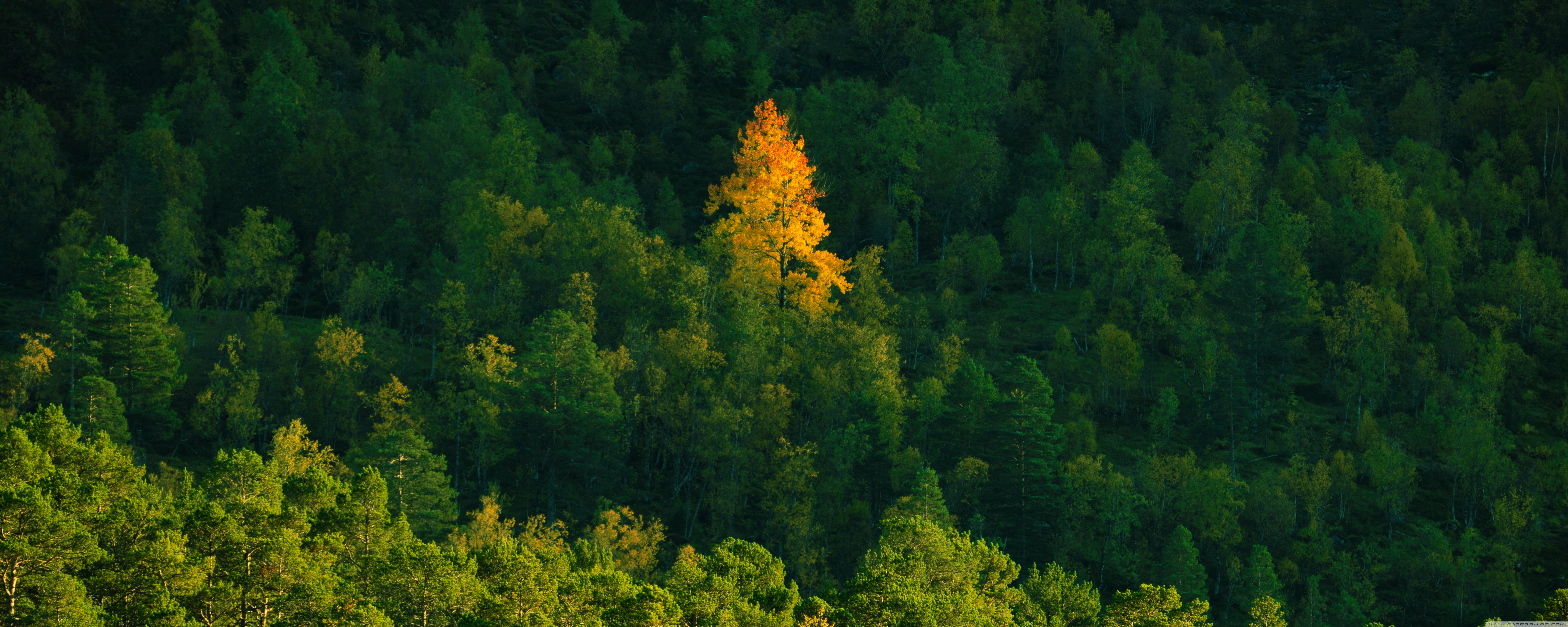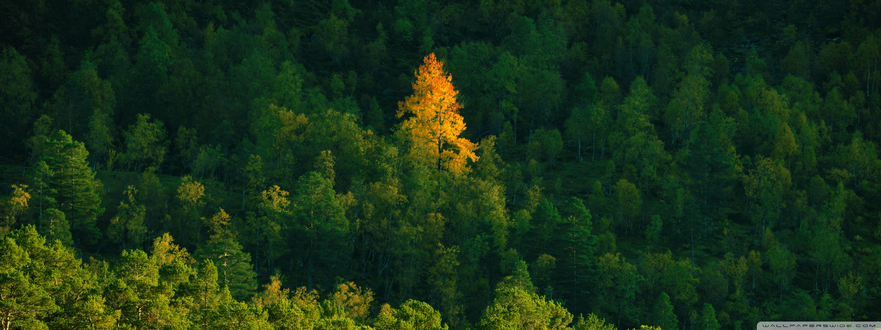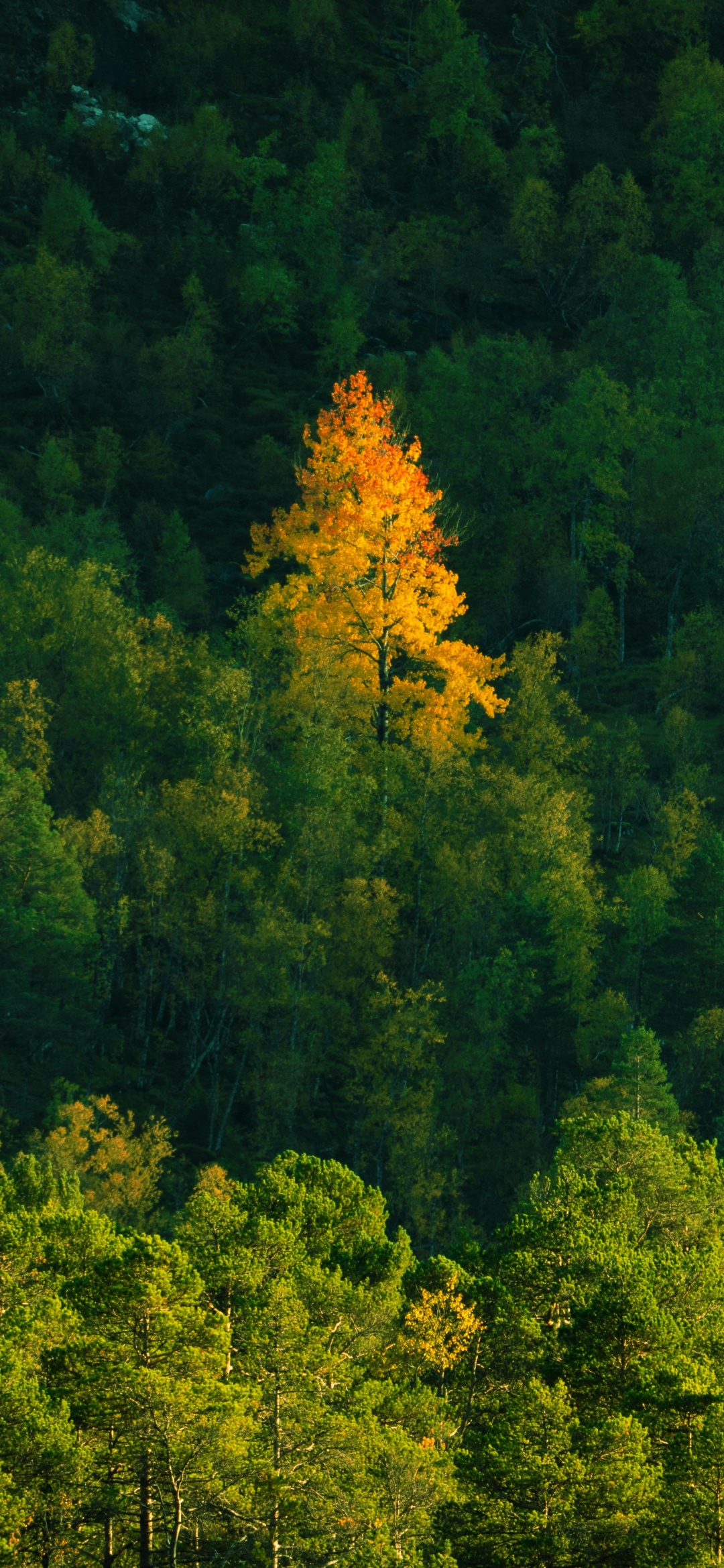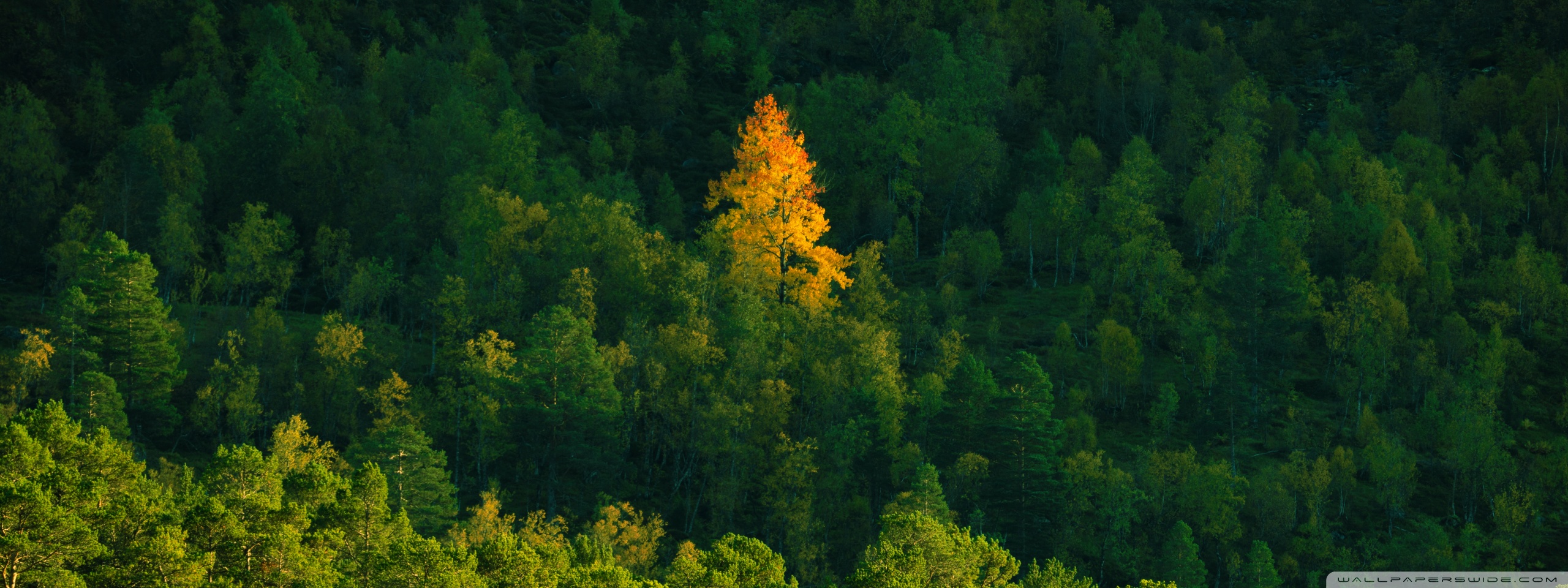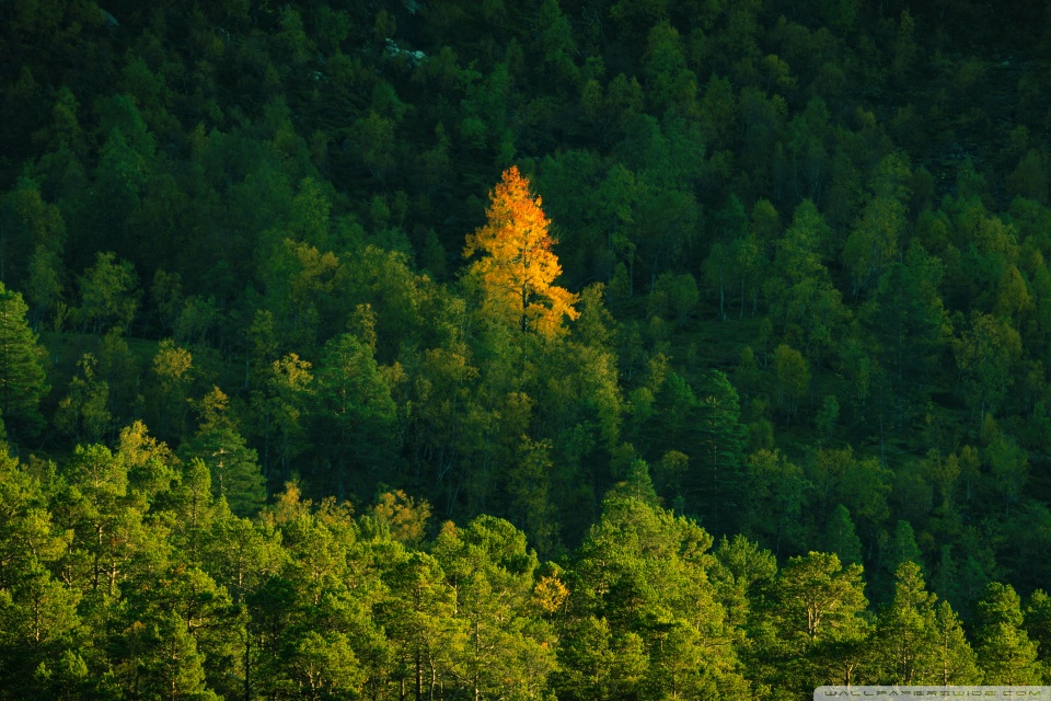 Download Yellow Birch Tree Amidst Pine Forest 4K UHD Wallpaper
