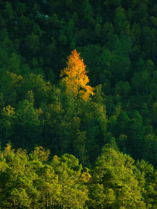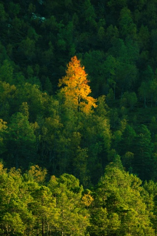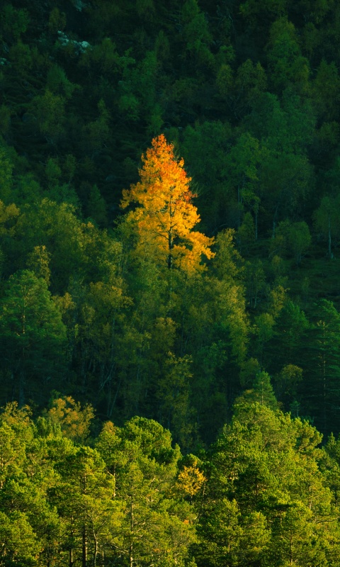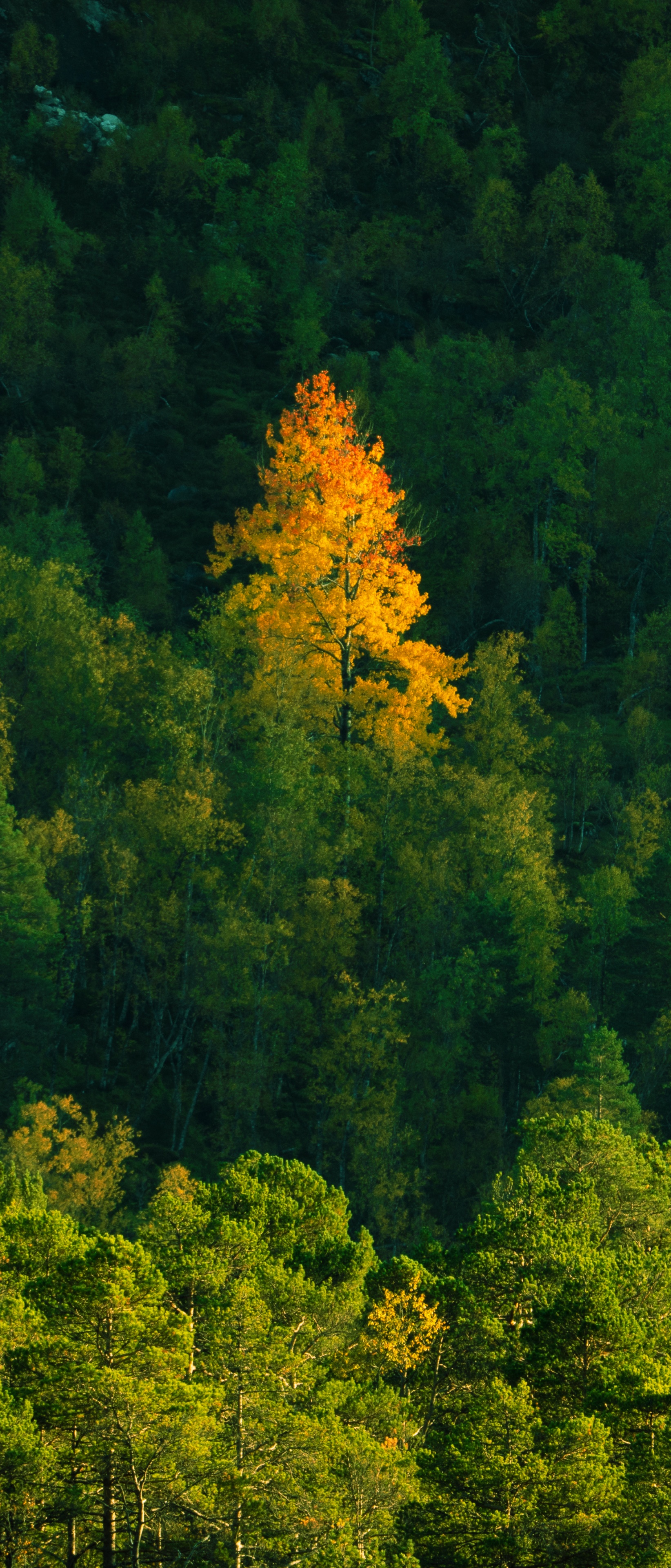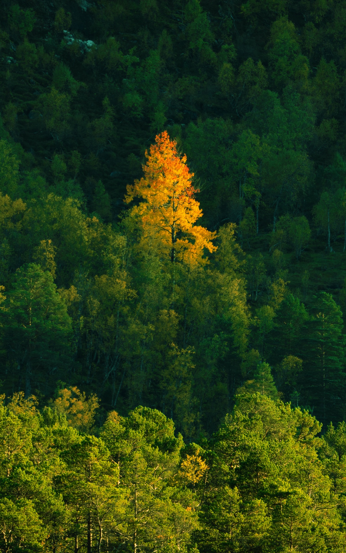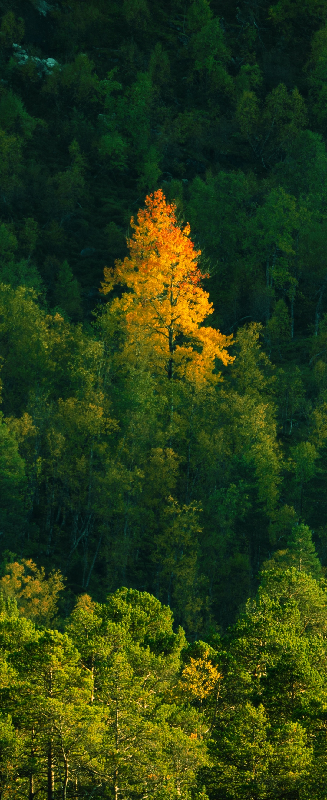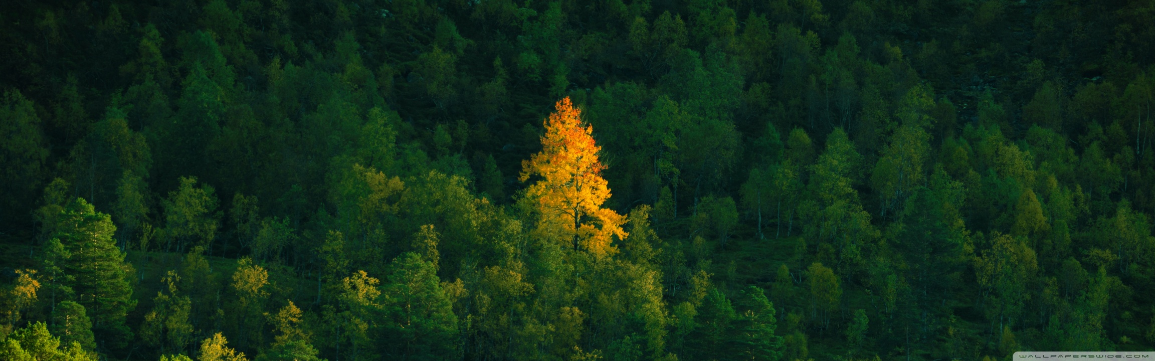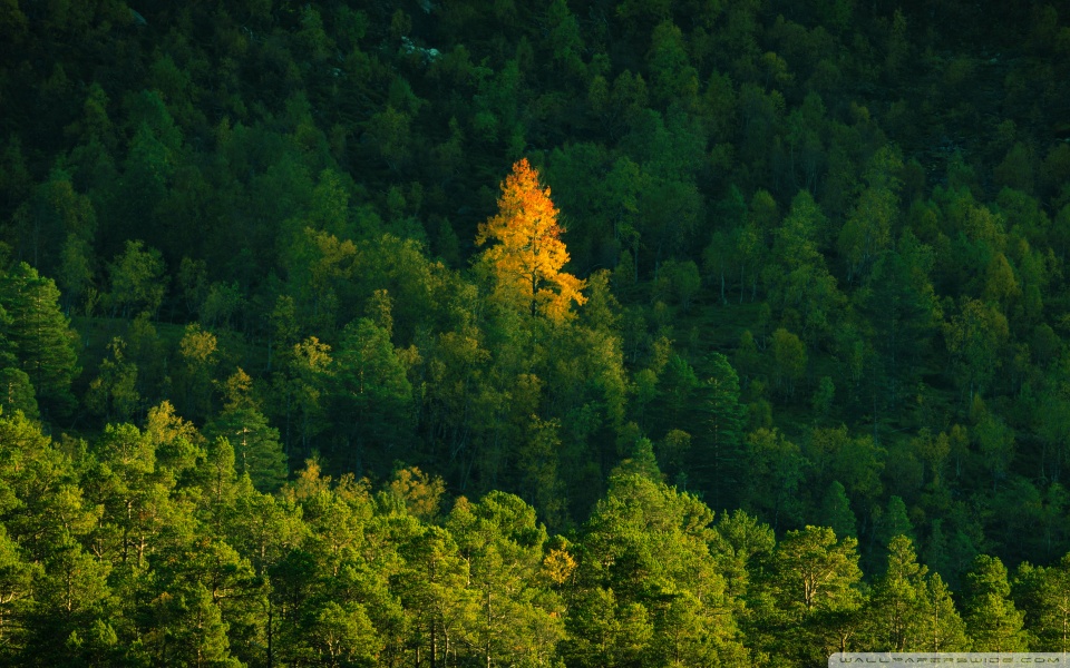 Download Yellow Birch Tree Amidst Pine Forest 4K UHD Wallpaper