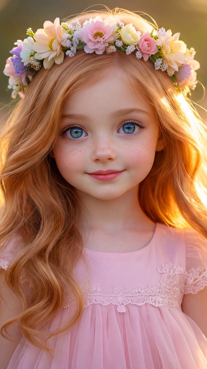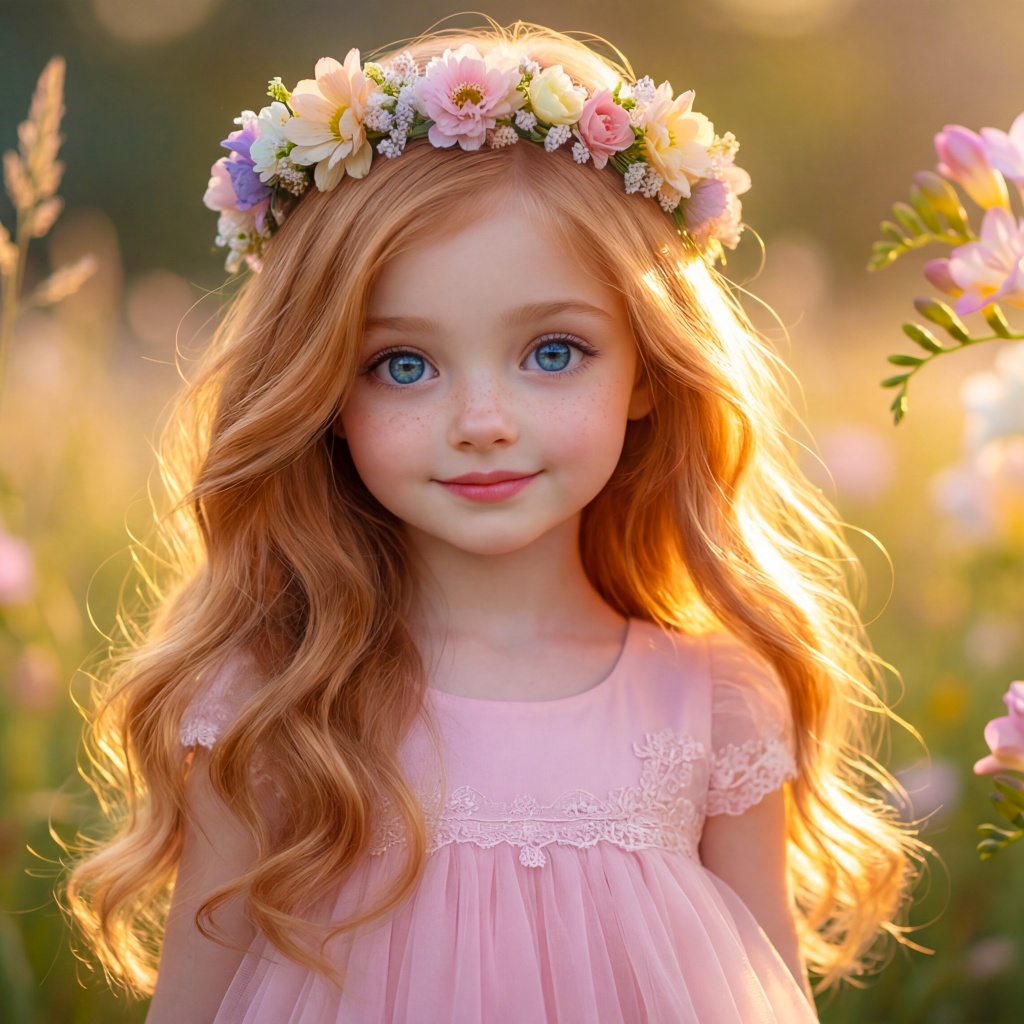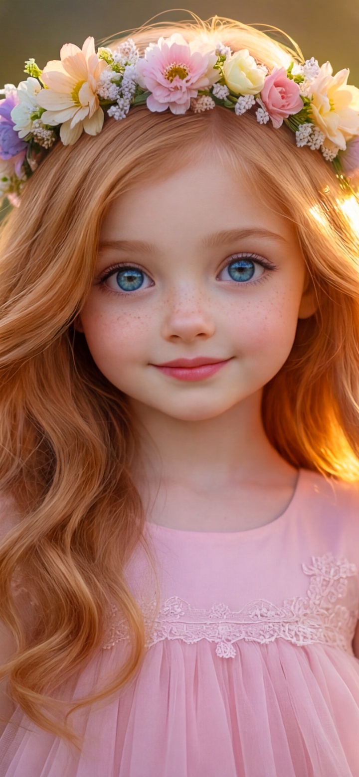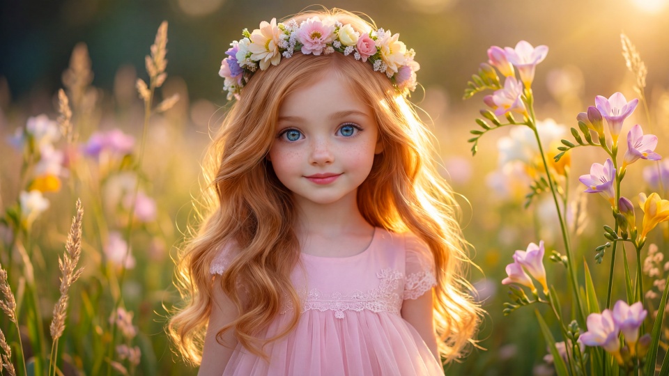 Download Young Girl with Flower Crown in Sunlit Flower... 4K UHD Wallpaper