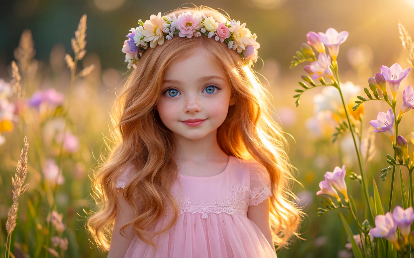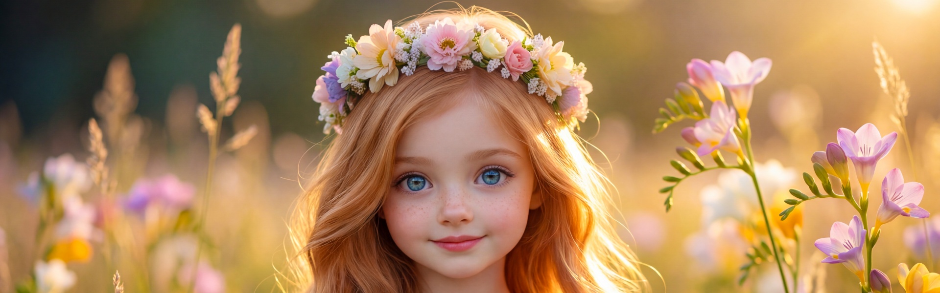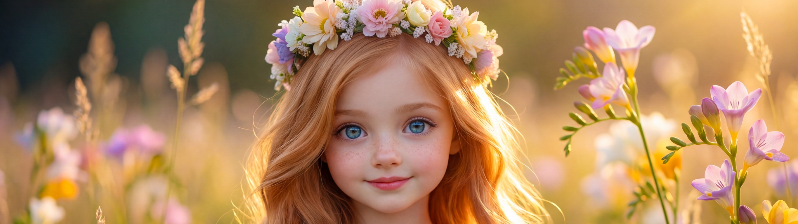 Download Young Girl with Flower Crown in Sunlit Flower... 4K UHD Wallpaper